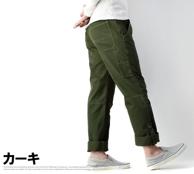 ペインターパンツ メンズ ワイドシルエット 綿パン チノパンツ ロールアップ アンクルパンツ ボトムス【A0B】【パケ1】