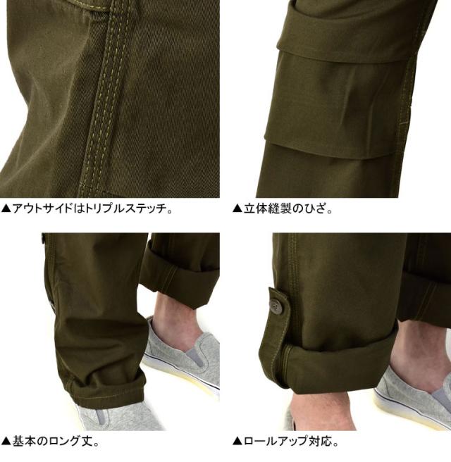 ヒザの曲げ伸ばしがしやすい立体裁断と、 アクションプリーツを備えたヒザまわりが穿きやすさをサポートしてくれ、 ハンマーフックやパッチポケットの他、 らしさを強調する2本針・3本針のステッチ仕上げです。