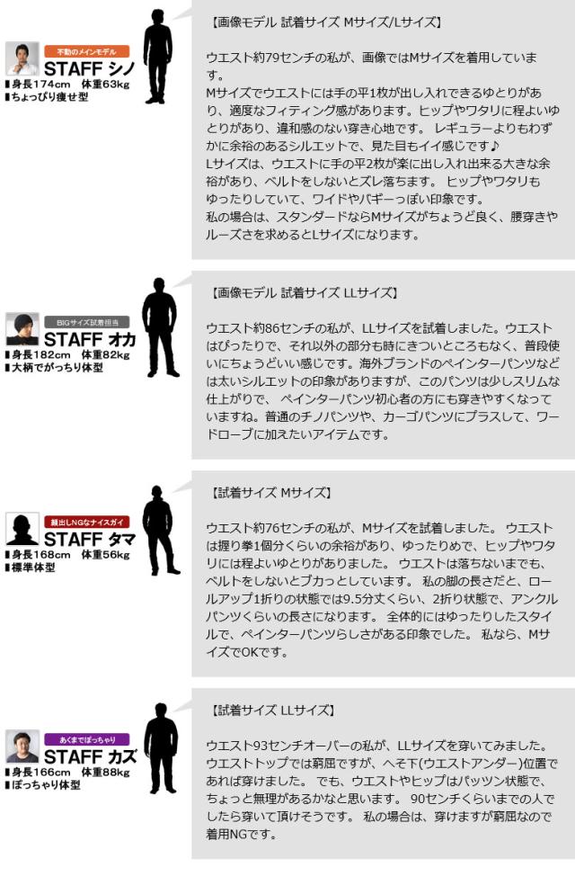 股上は深く、ワタリは広めに、ヒップから裾にかけて徐々に細くなっており、 ルーズになり過ぎないよう絶妙に計算されたシルエットが自慢。