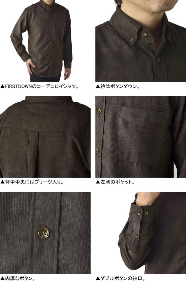 FIRSTDOWN ファーストダウン コーデュロイシャツ メンズ ボタンダウン 長袖 ポリスエード シャツ【A0V】【パケ1】