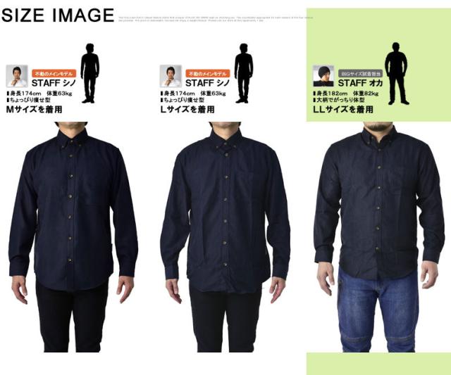 ボタンダウン衿、シングルカフスの王道デザインとベーシックなサイズスペックです。