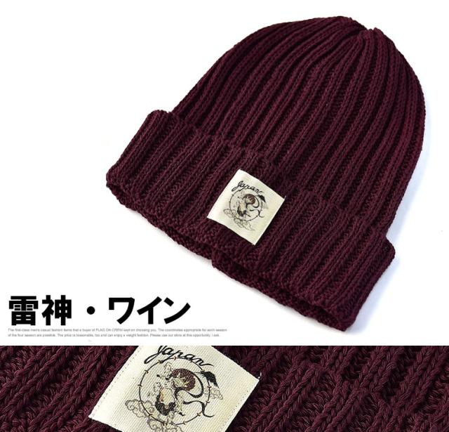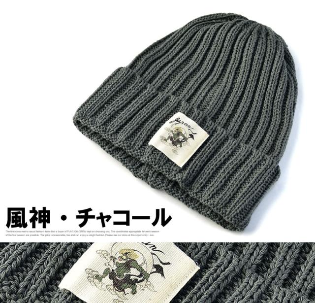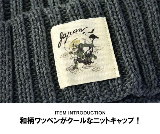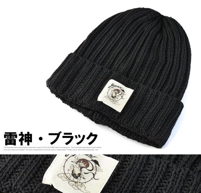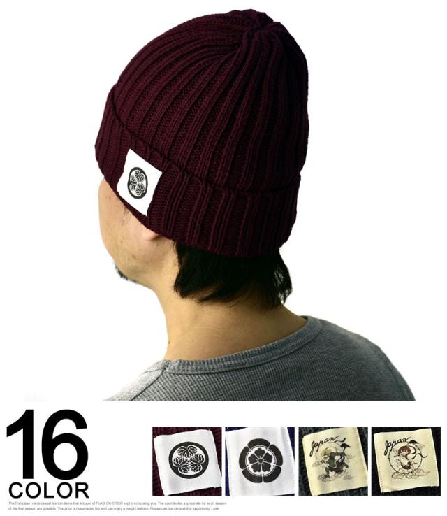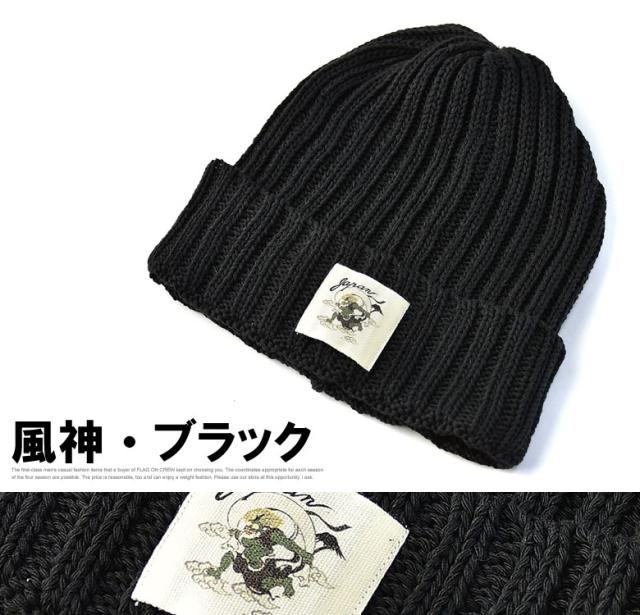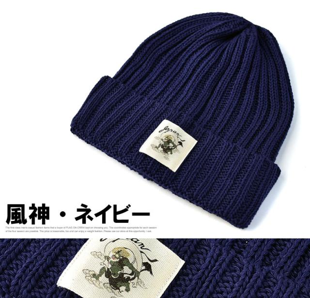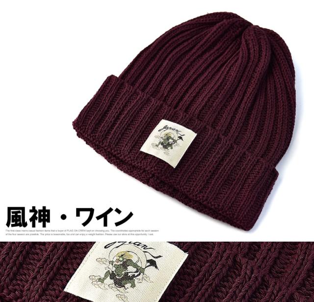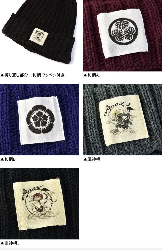 ニット帽 メンズ ニットキャップ 和柄ワッペン 家紋 風神 雷神 ファッション小物 送料無料【Z9V】【パケ2】