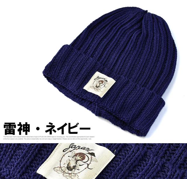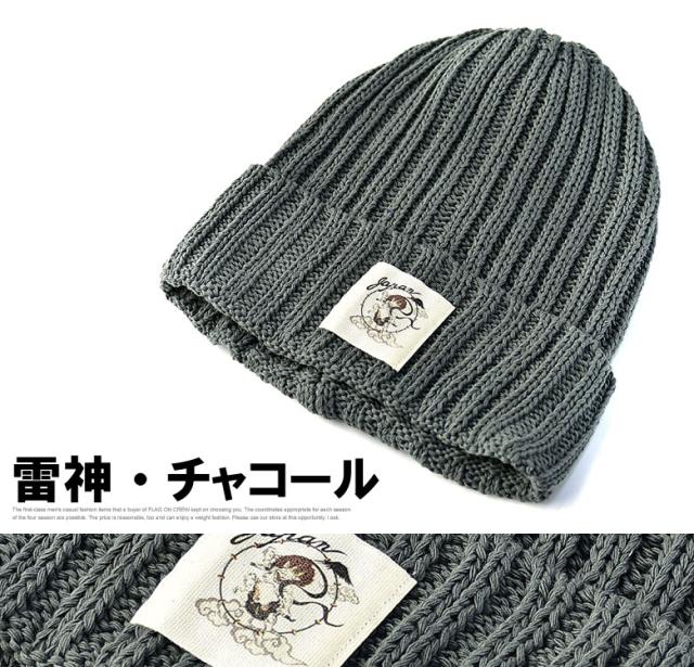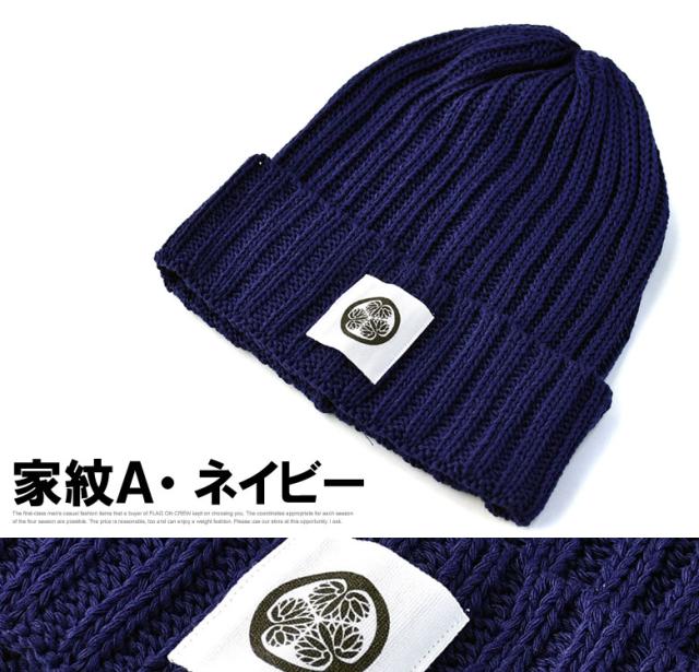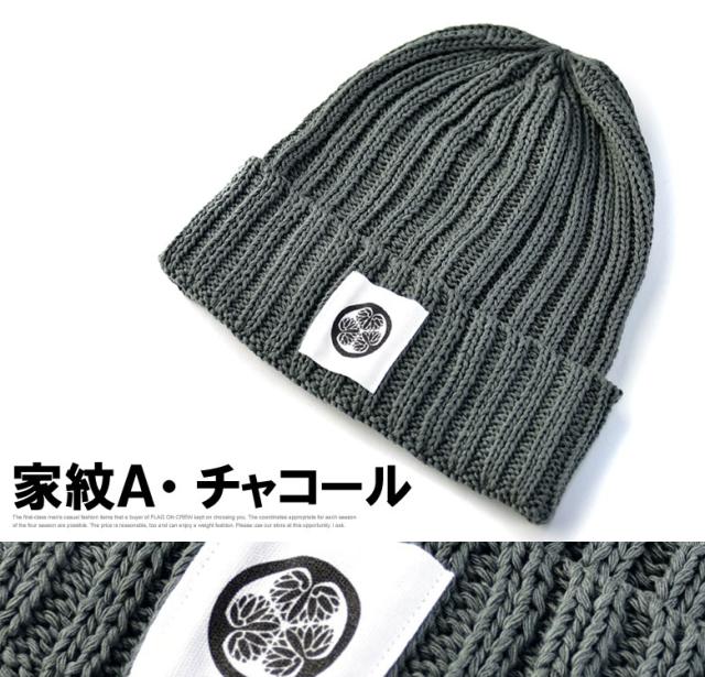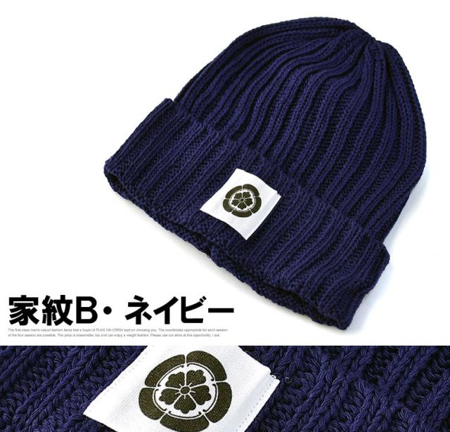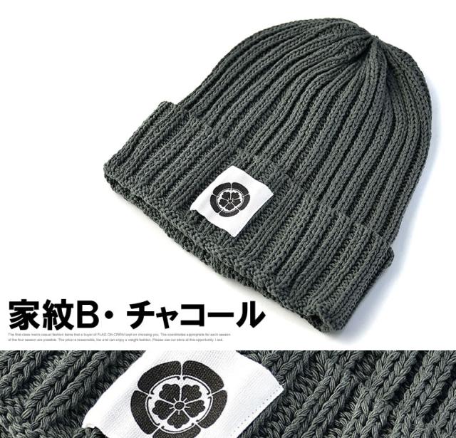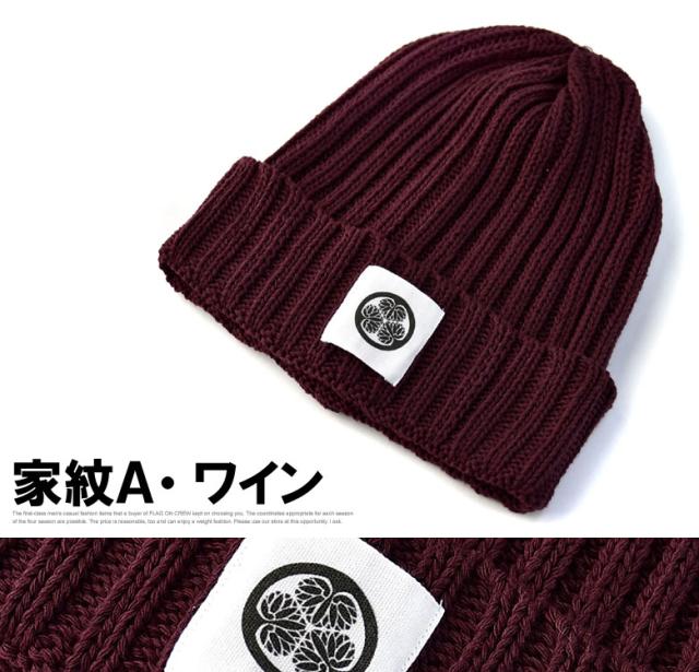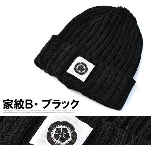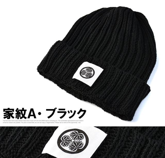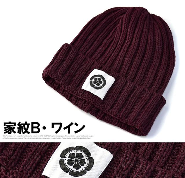 ニット帽 メンズ ニットキャップ 和柄ワッペン 家紋 風神 雷神 ファッション小物 送料無料【Z9V】【パケ2】