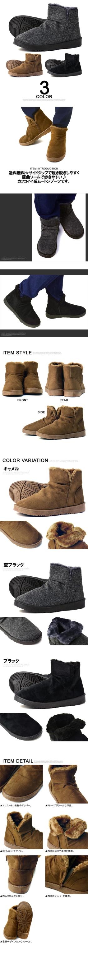 送料無料☆サイドジップで履き脱ぎしやすく屈曲ソールで歩きやすい♪カッコイイ系ムートンブーツです。