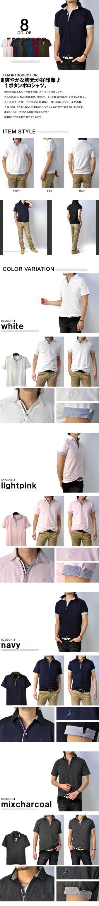 ゆうパケット送料無料!爽やかな胸元が好印象♪1ボタンのV開きポロシャツ。