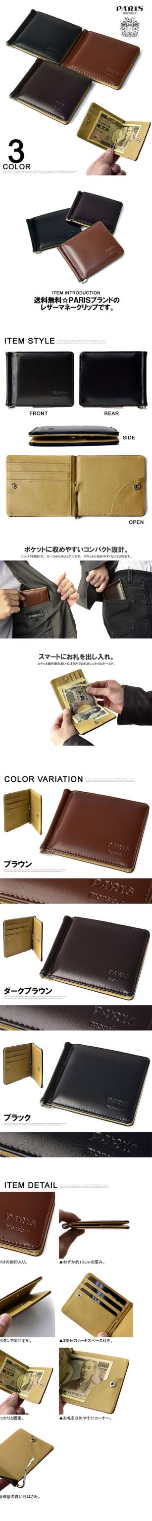 パリス PARIS マネークリップ メンズ サイフ 財布 レザー 本革 折りたたみ 札ばさみ 紙幣入れ カードホルダー ブランド ファッション小物【Z1Y】【パケ5】