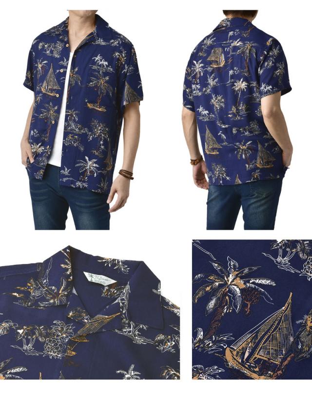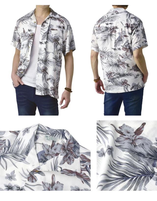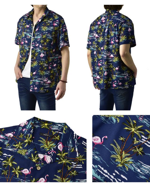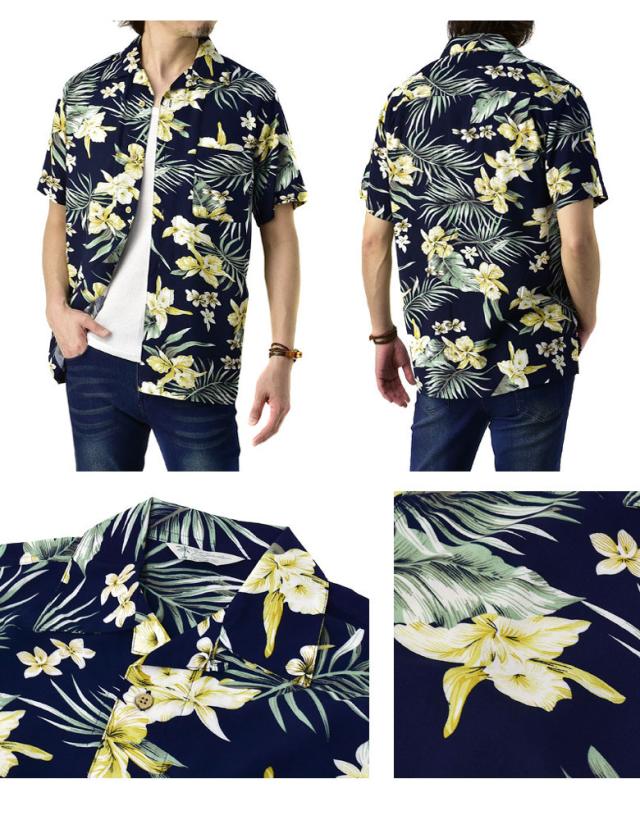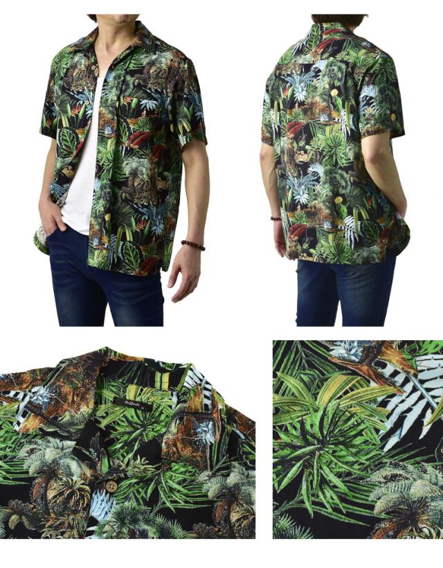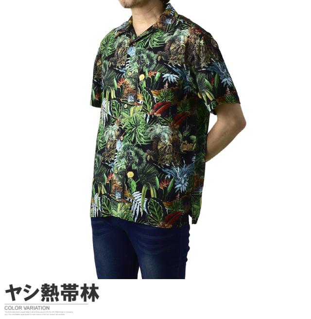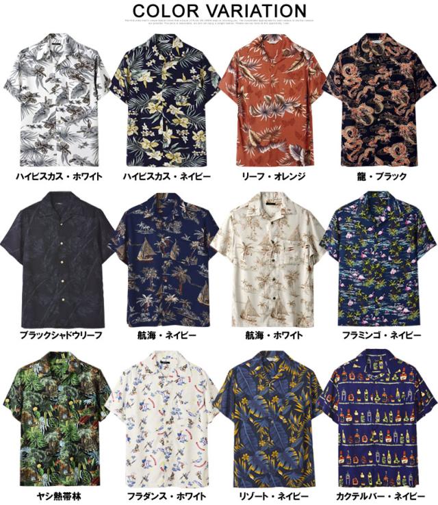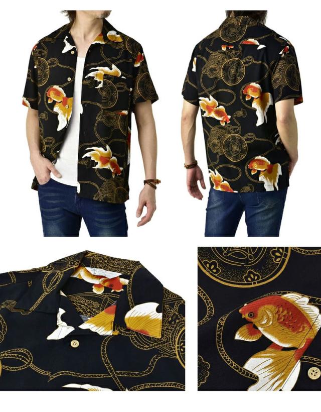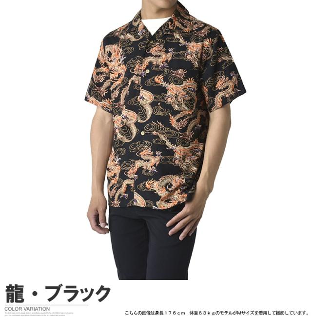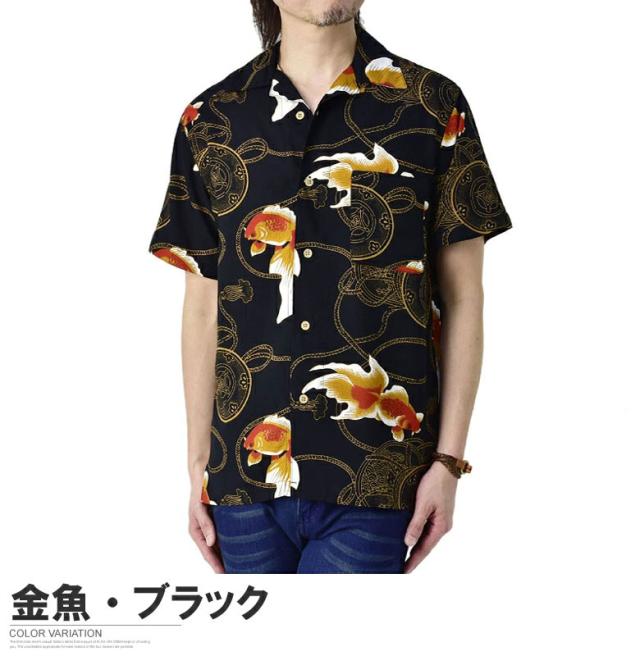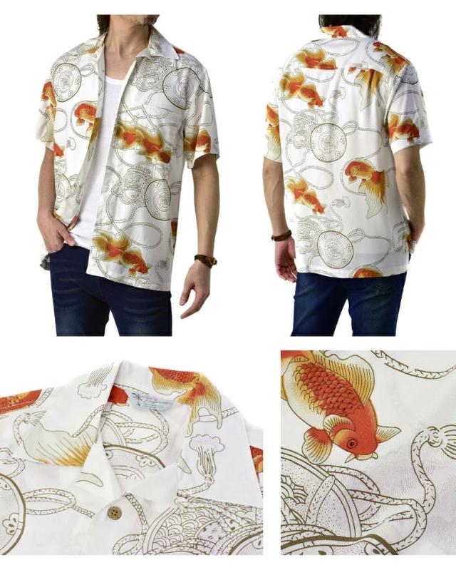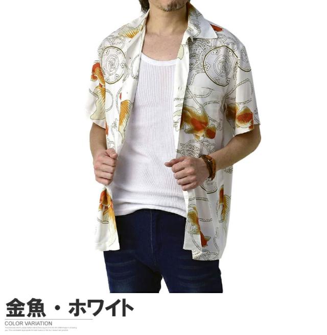 アロハシャツ 半袖 メンズ 開襟 シャツ 開襟シャツ レーヨン ゆったりサイズ 和柄 トップス【B3N】【パケ2】