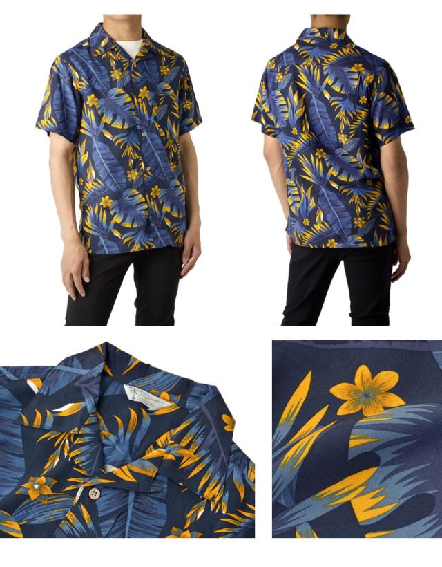 レーヨン生地のオープンカラー開襟半袖シャツです。