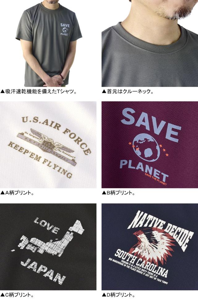 吸汗速乾 Tシャツ 半袖 ドライ ドライ機能 クルーネック ワンポイント メンズ トップス プリント ドライ性能 検査済み【D0A】【パケ2】