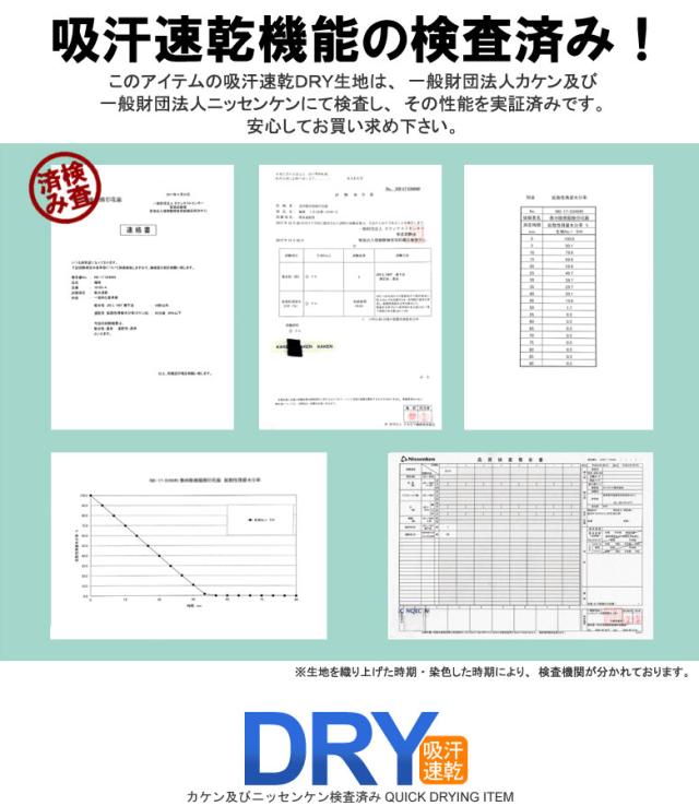 ■本製品の吸汗速乾DRY生地は、一般財団法人カケンにて検査し、 その性能を実証済みです。 安心してお買い求め下さい。