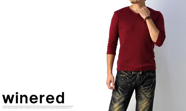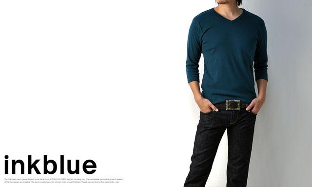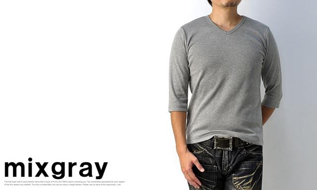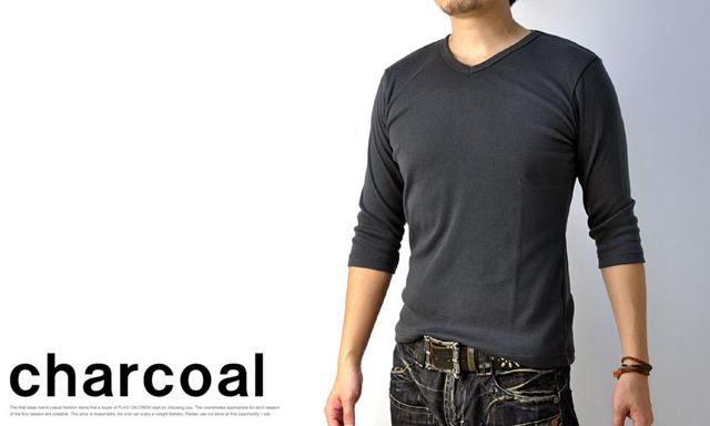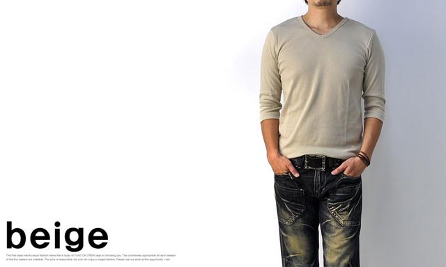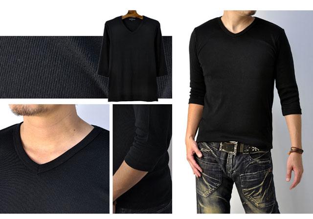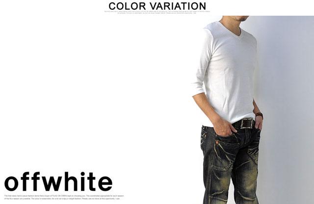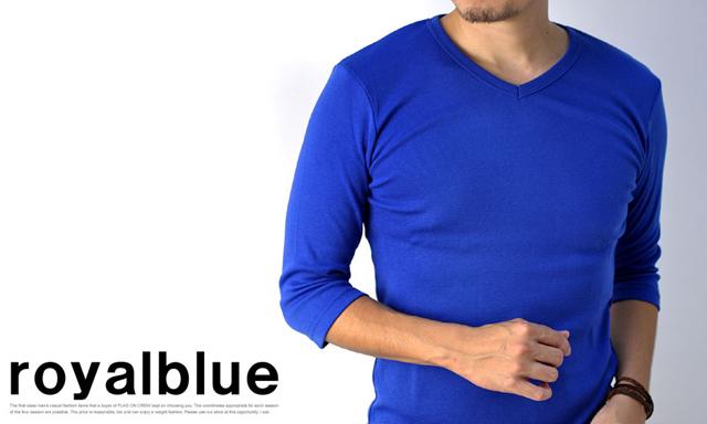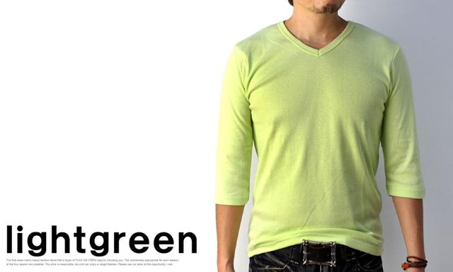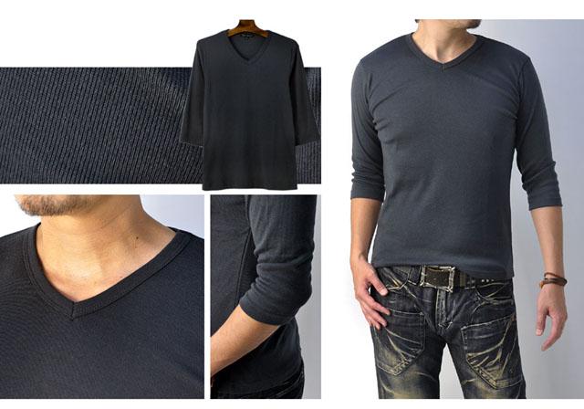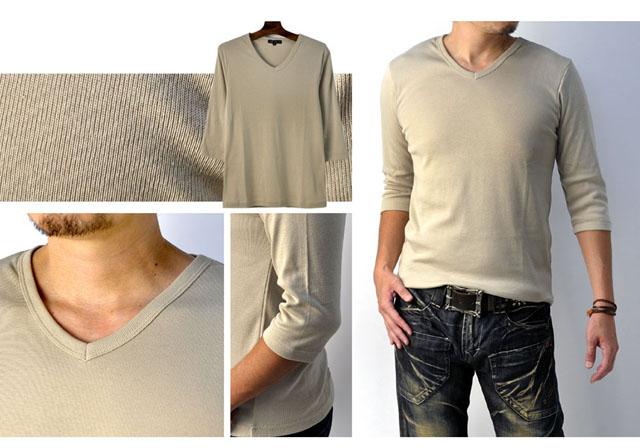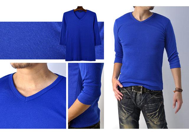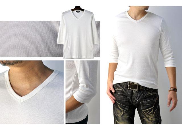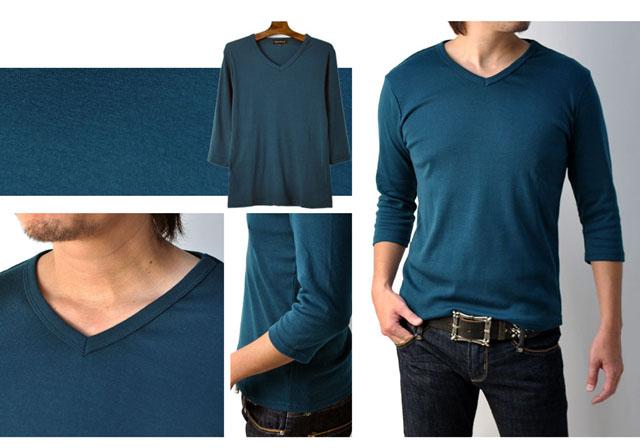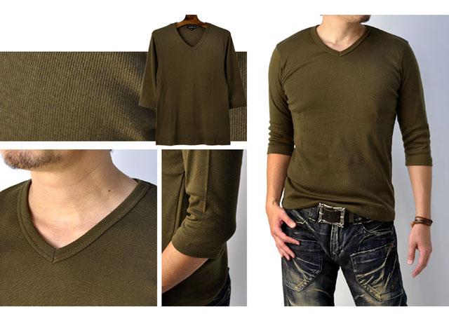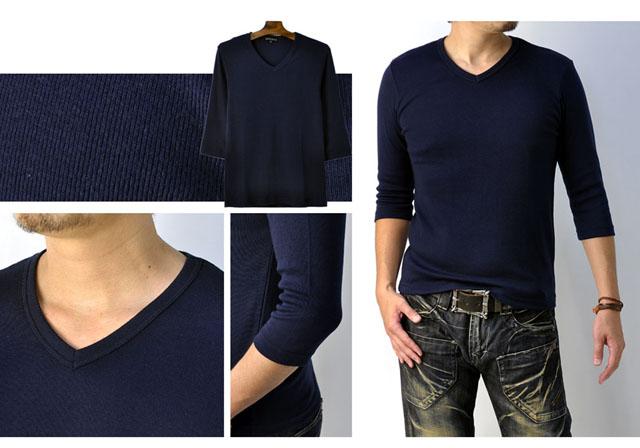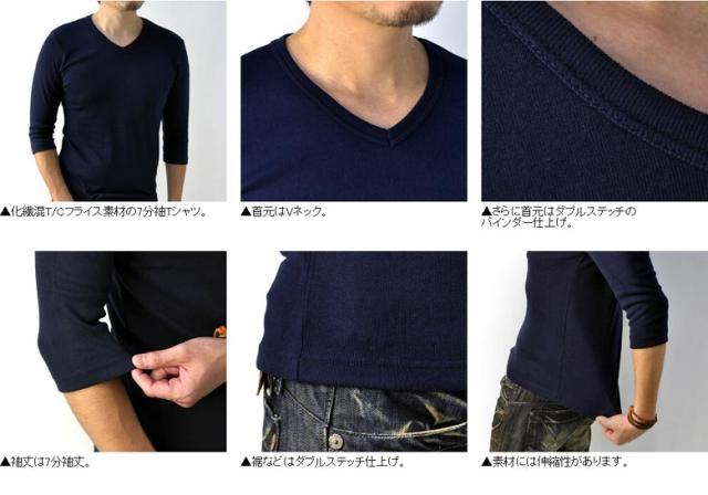Tシャツ メンズ 七分袖 7分 Vネック トップス フライス生地 ストレッチ カットソー【E1C】【パケ2】