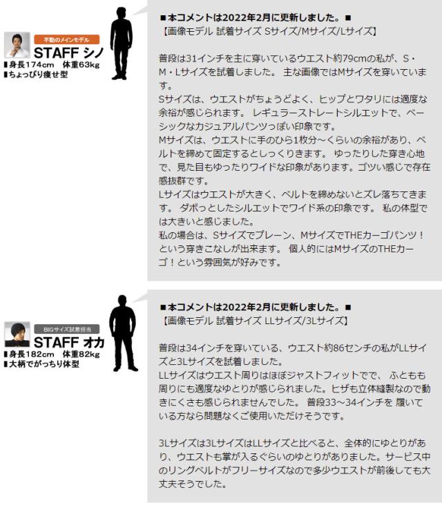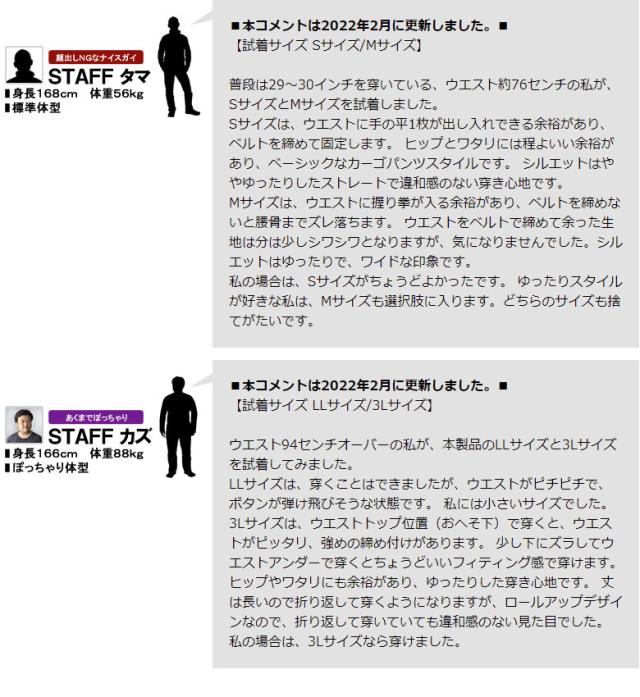 - このカーゴパンツも前回同様気に入りました。迅速丁寧なご対応で安心できるお店です。またお願いしますね。