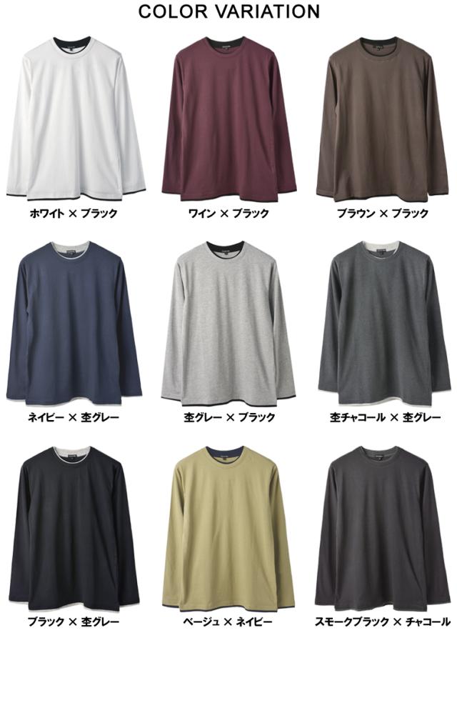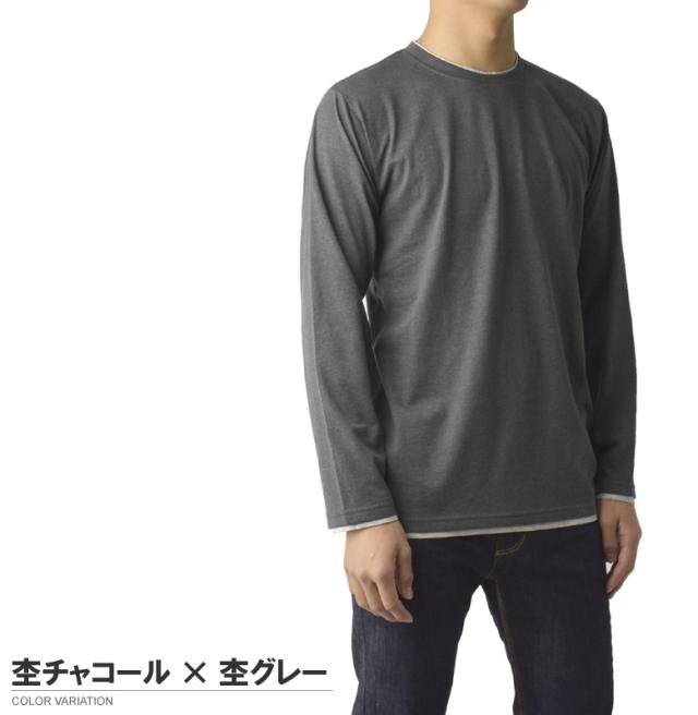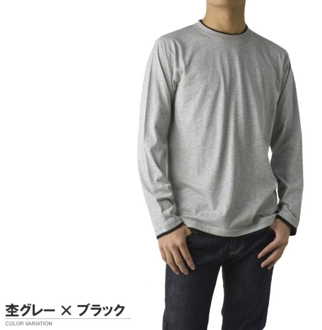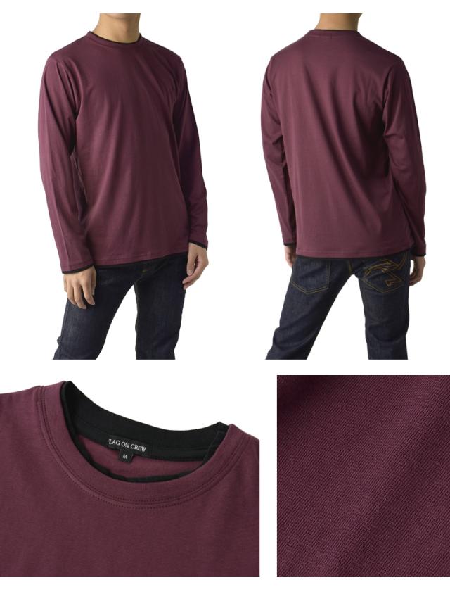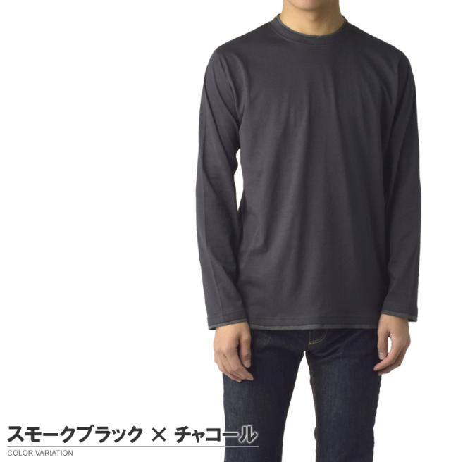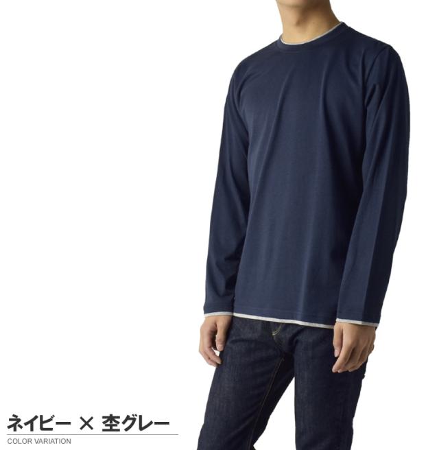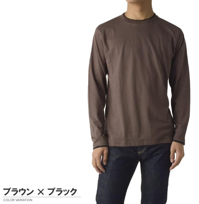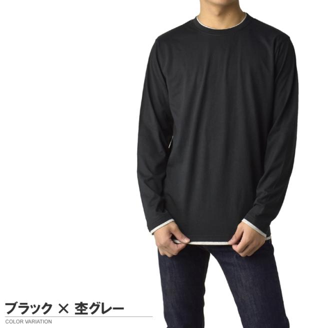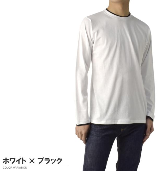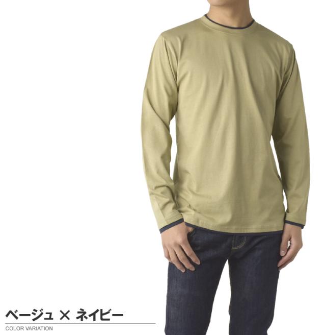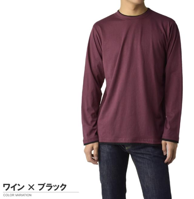 長袖Tシャツ メンズ ロンT 無地 カットソー フェイクレイヤード 配色 クルーネック ロングT【B5O】【パケ2】