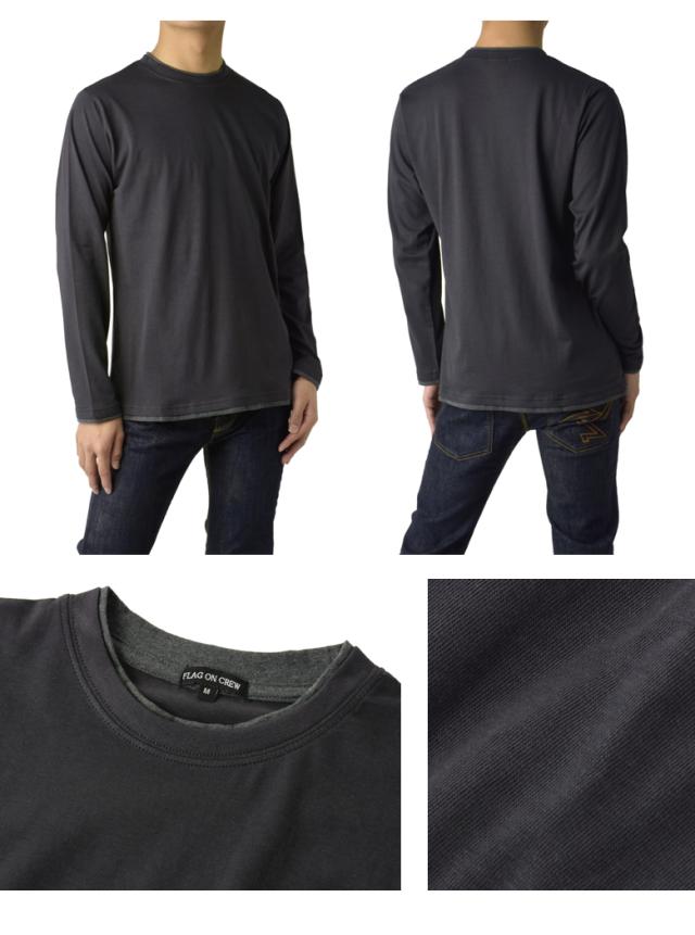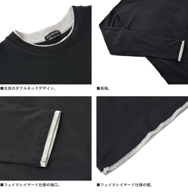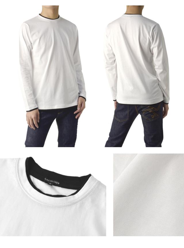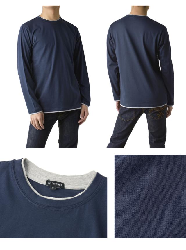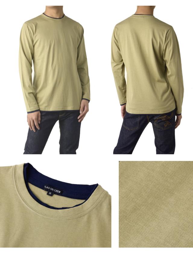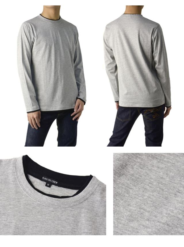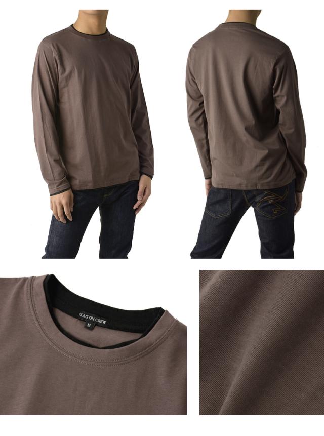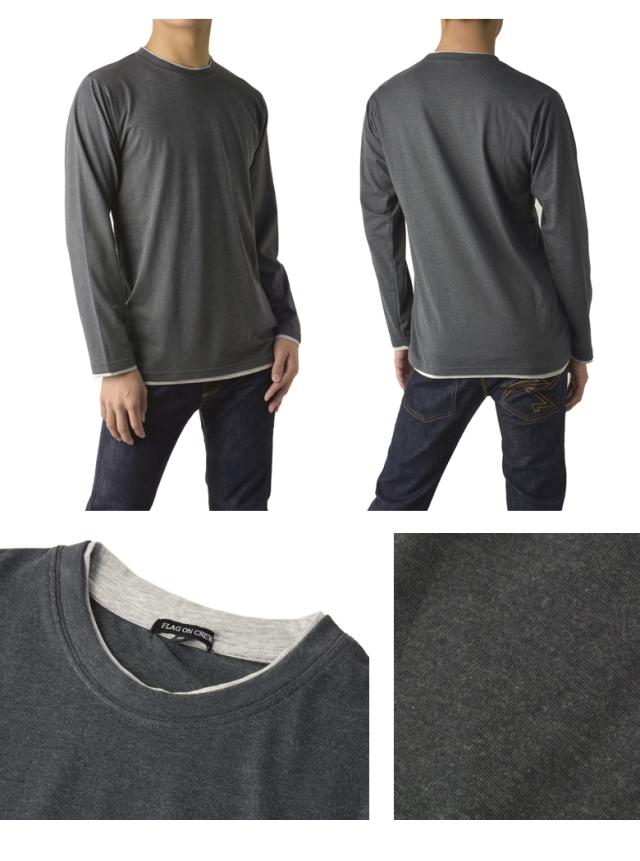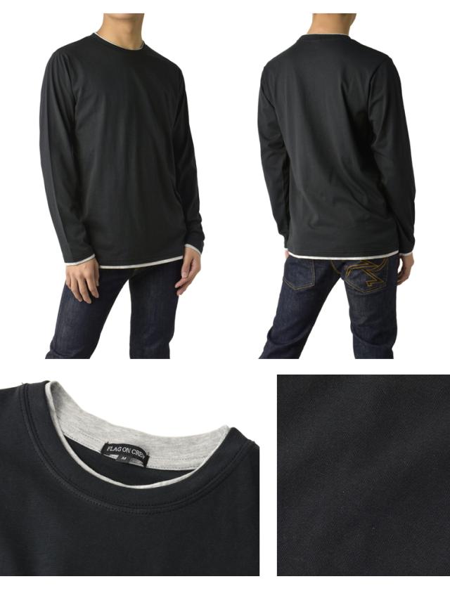 長袖Tシャツ メンズ ロンT 無地 カットソー フェイクレイヤード 配色 クルーネック ロングT【B5O】【パケ2】