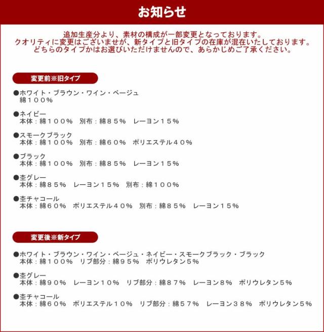 (※杢グレー・杢チャコールは、綿と化繊の混合素材となります。)