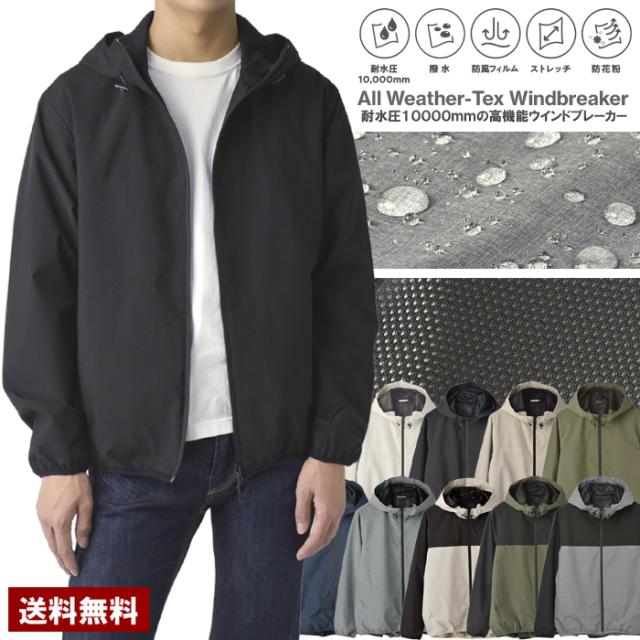 耐水圧10000mm 高機能 全天候型 フーディー ジャケット ウインドブレーカー 撥水 防風 防花粉 ストレッチ メンズ ライトアウター フルジップ パーカー 裏メッシュ UV対策 軽量 晴 雨 風 雪 日常 仕事 作業着【A4S】【パケ1】
