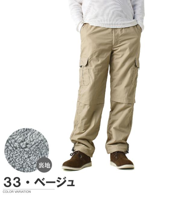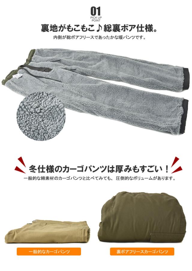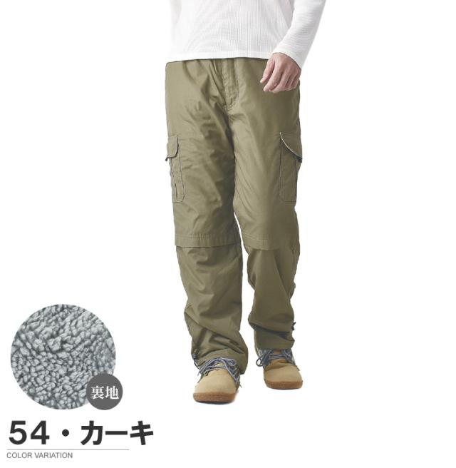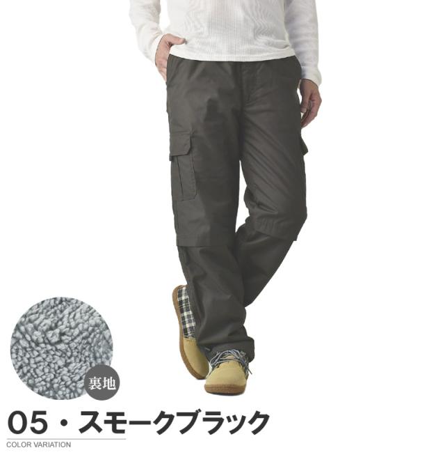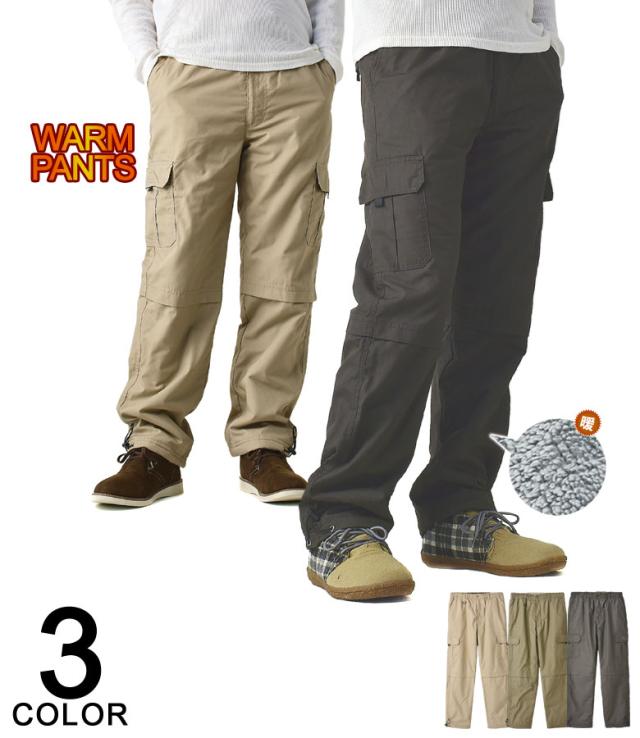 暖かい カーゴパンツ メンズ 防寒パンツ 裏ボア 厚地パンツ 冬用 ボトムス 無地 Dカン 裾コード装備【B5S】