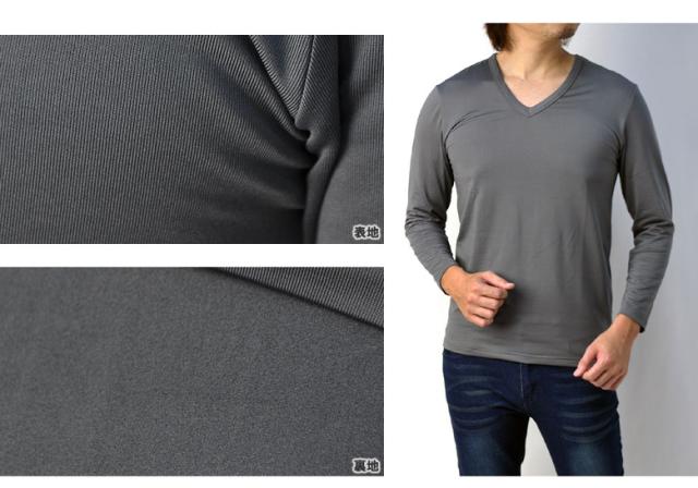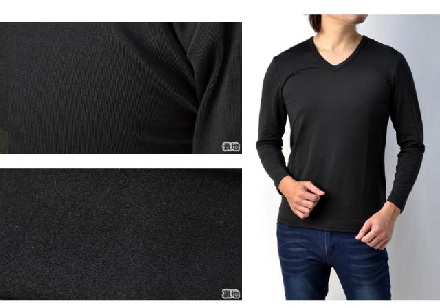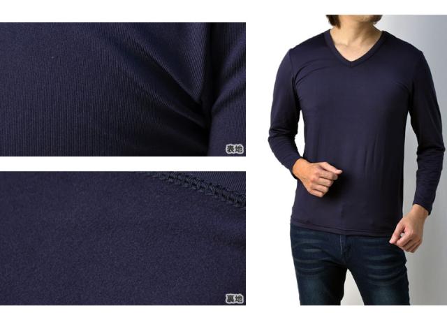 ゆうパケット便送料無料中♪厚手で内側が起毛の暖か肌着。スマートな襟元の深Vネック。