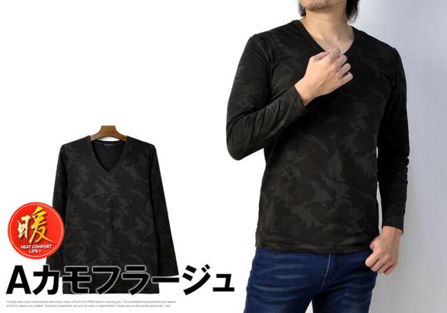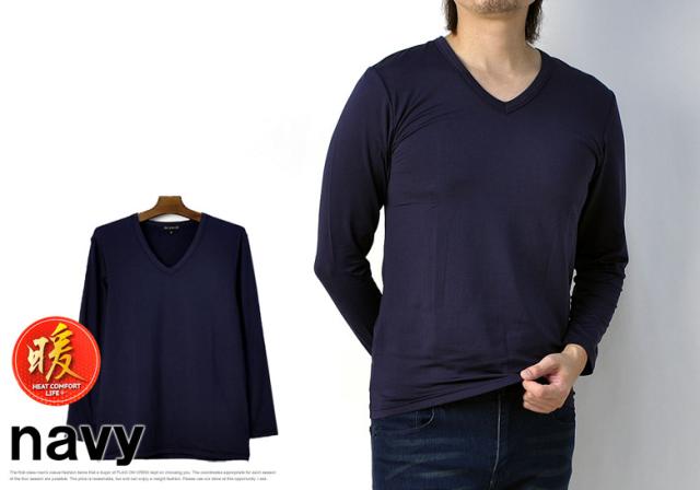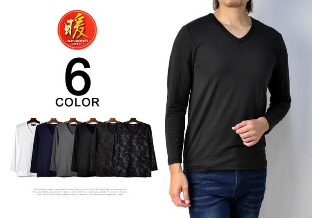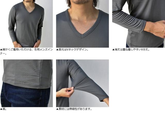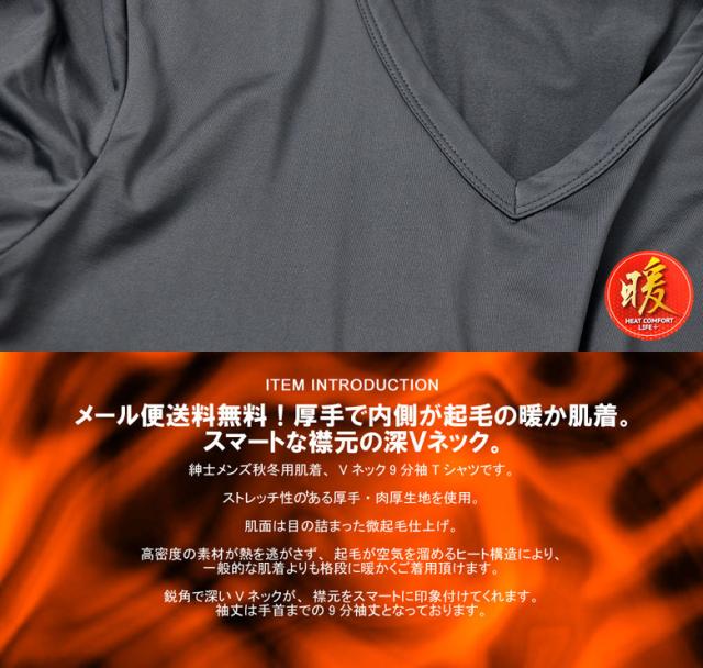 保温 インナー メンズ 肌着 Vネック 長袖 9分袖 アンダーウェア 内側起毛 Tシャツ 暖ヒート トップス【E3J】【パケ1】