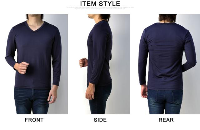 紳士メンズ秋冬用肌着、Vネック9分袖Tシャツです。 ストレッチ性のある厚手・肉厚生地を使用。