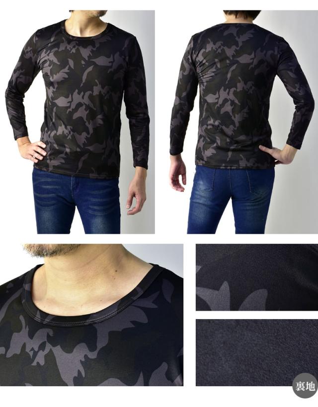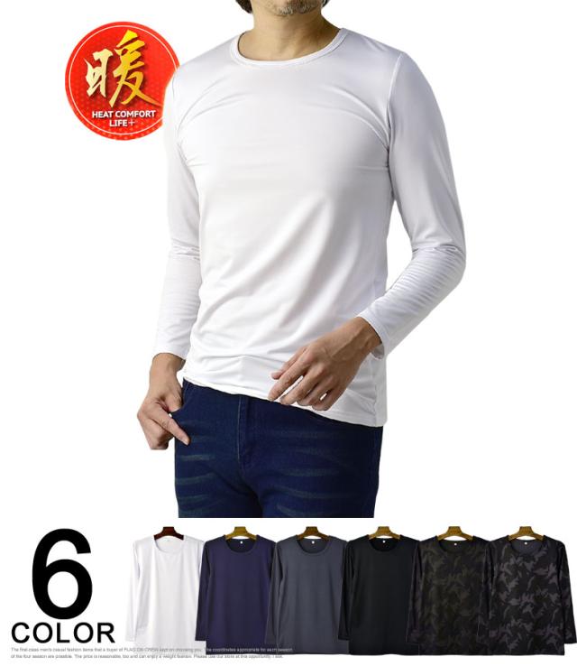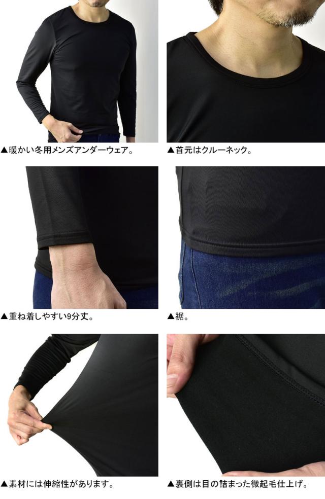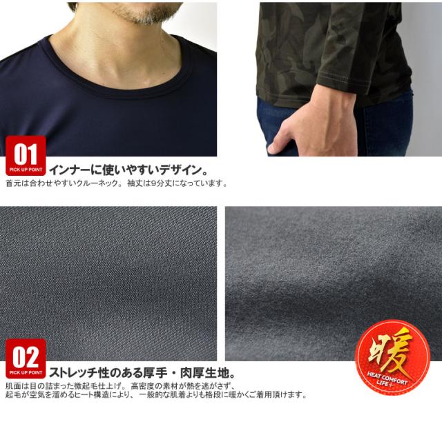 保温 インナー メンズ 肌着 クルーネック 長袖 9分袖 アンダーウェア 内側起毛 Tシャツ 暖ヒート トップス【E3M】【パケ1】