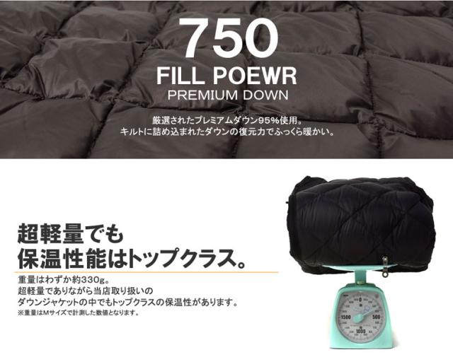 1着約330g(Mサイズ)と、ほぼダウンと素材の重量で軽量ながら、この膨らみとボリューム感。