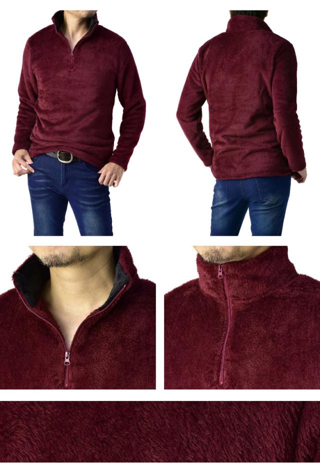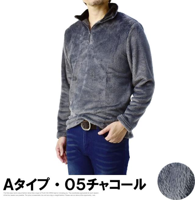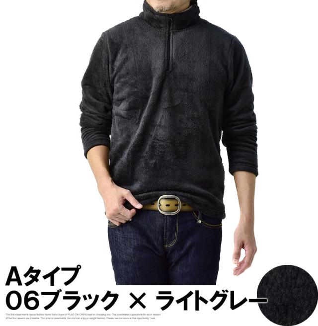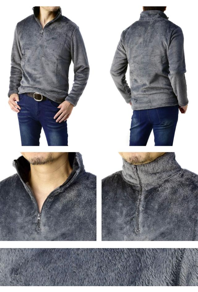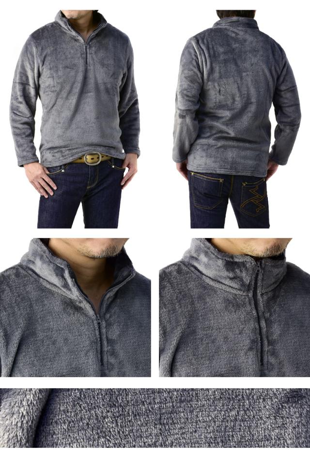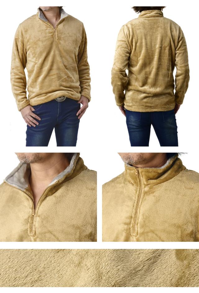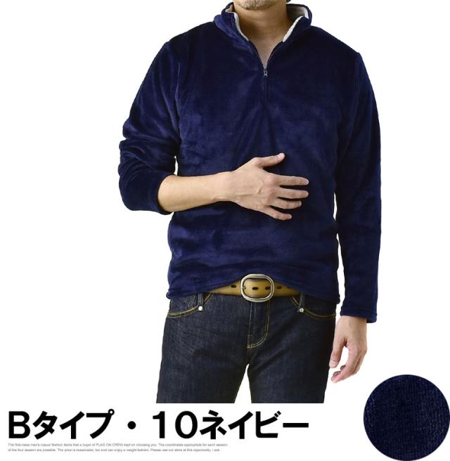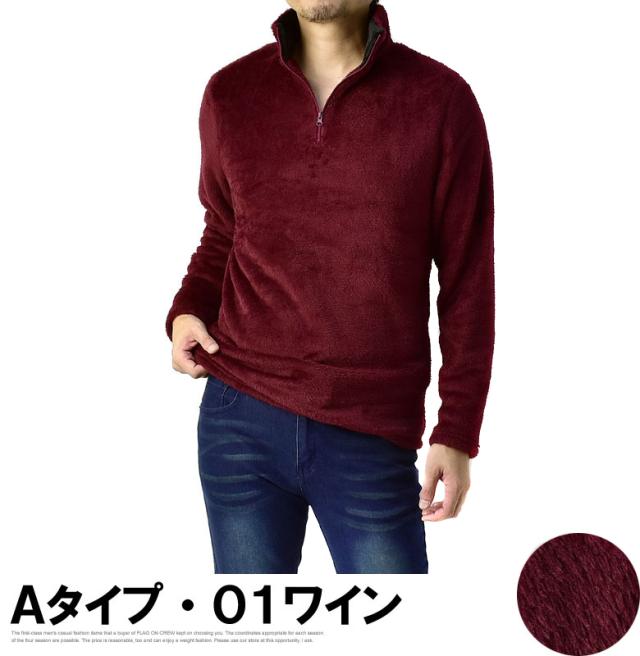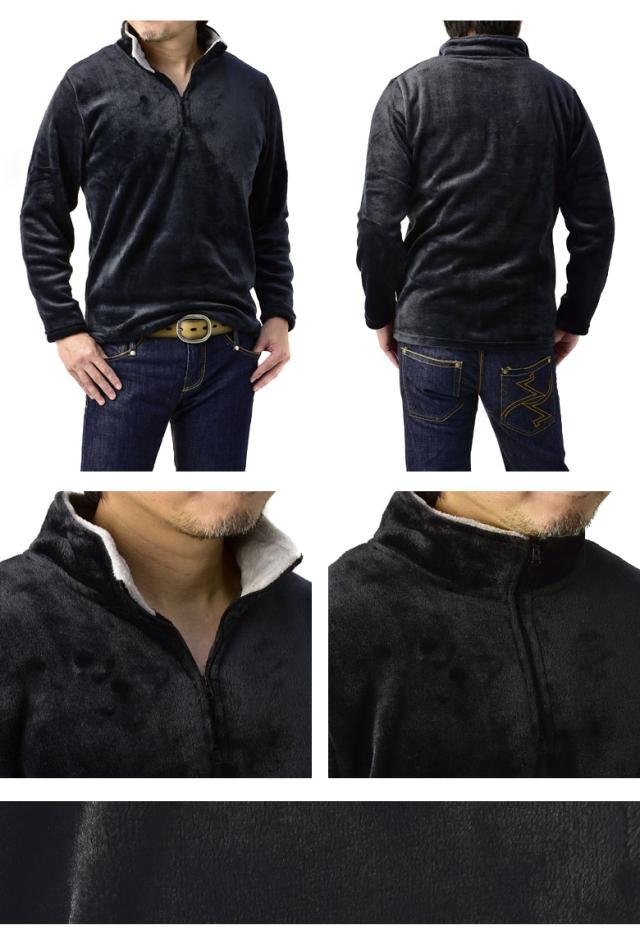 ボアフリース ハイネック メンズ タートルネック カットソー ハーフジップ ベロア あたたかい トップス 秋 冬 ポロ【B9Q】【パケ1】【A】