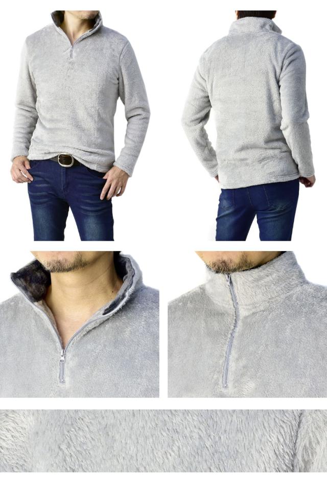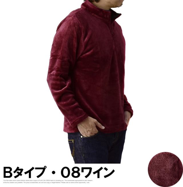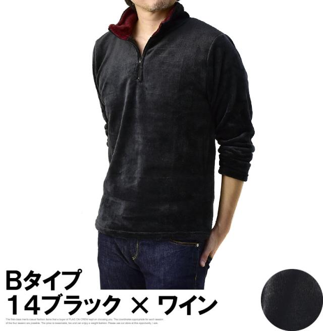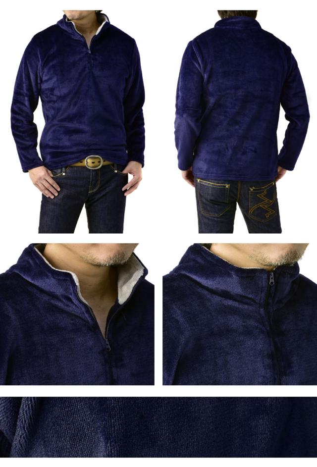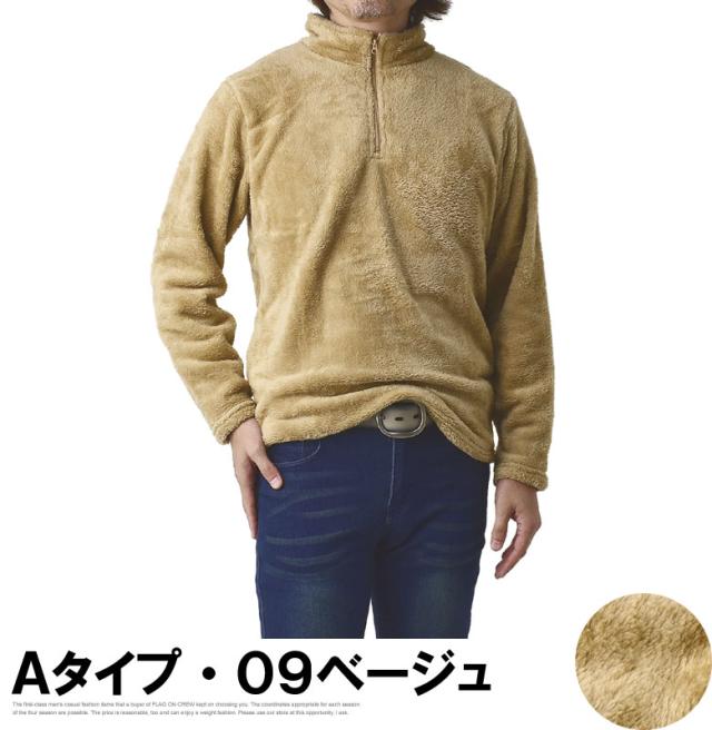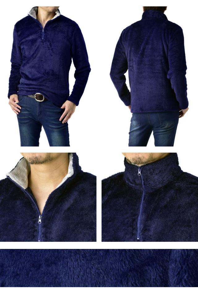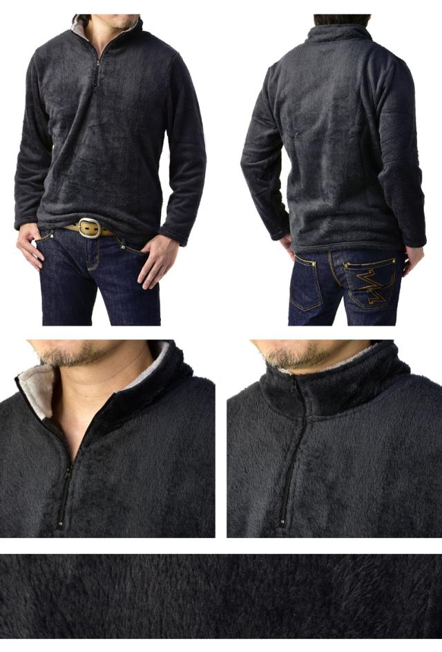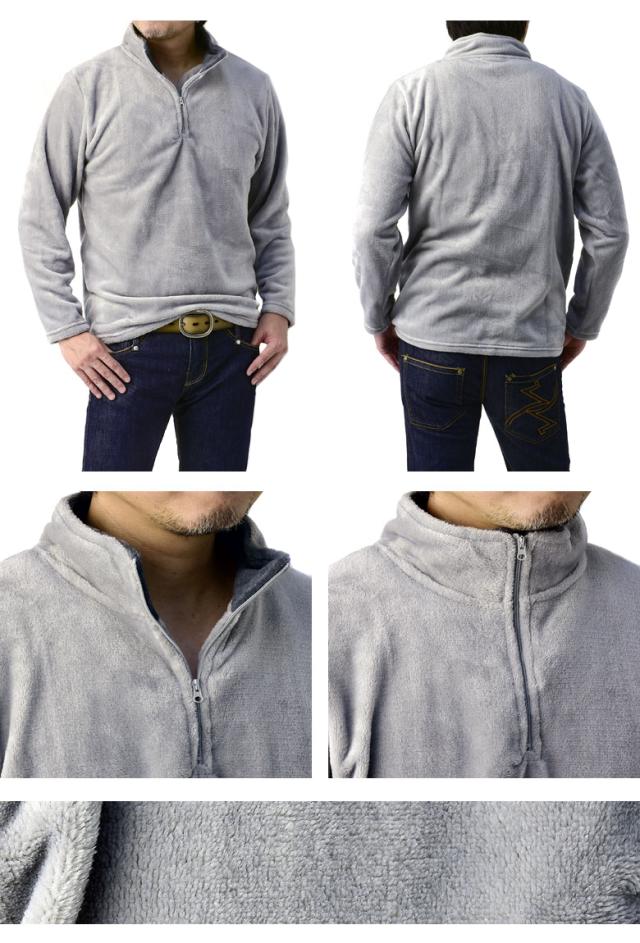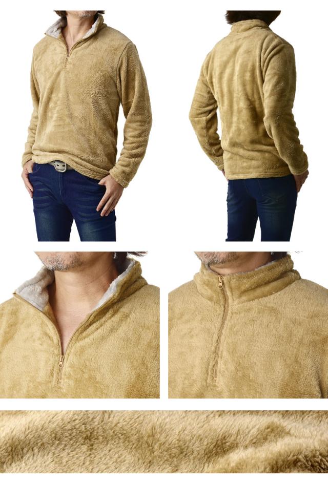 ボアフリース ハイネック メンズ タートルネック カットソー ハーフジップ ベロア あたたかい トップス 秋 冬 ポロ【B9Q】【パケ1】【A】