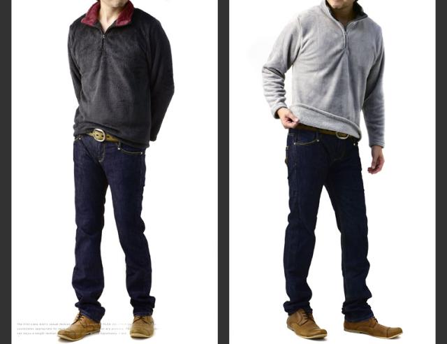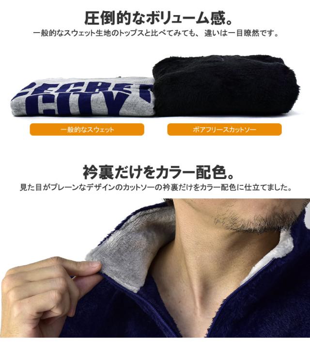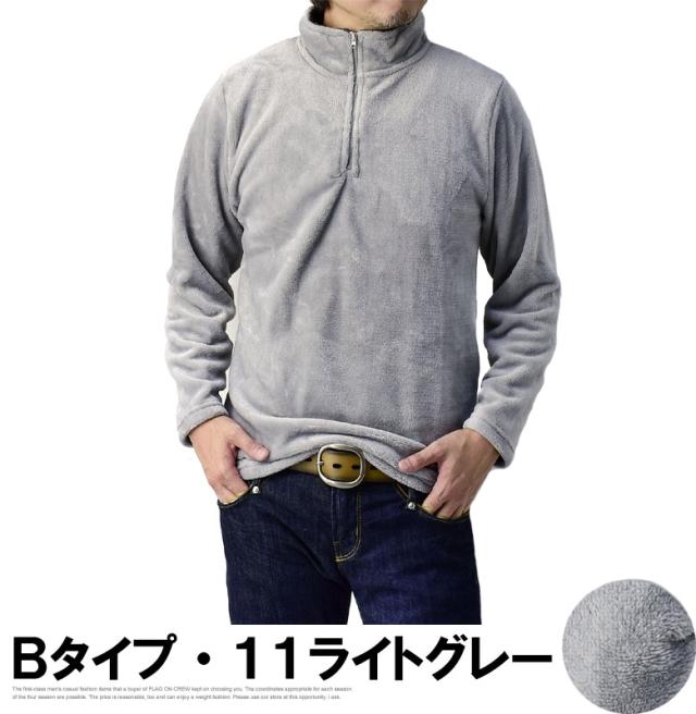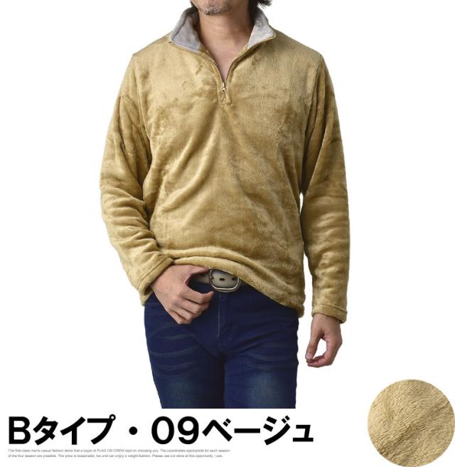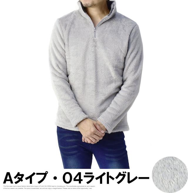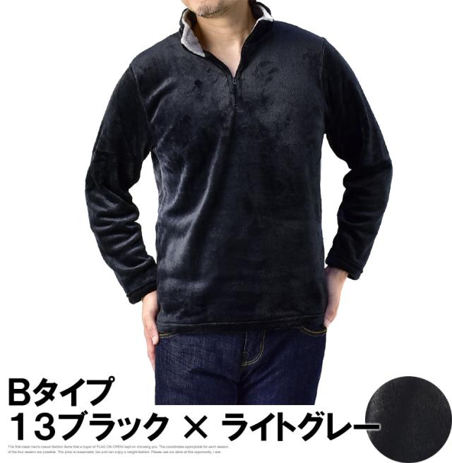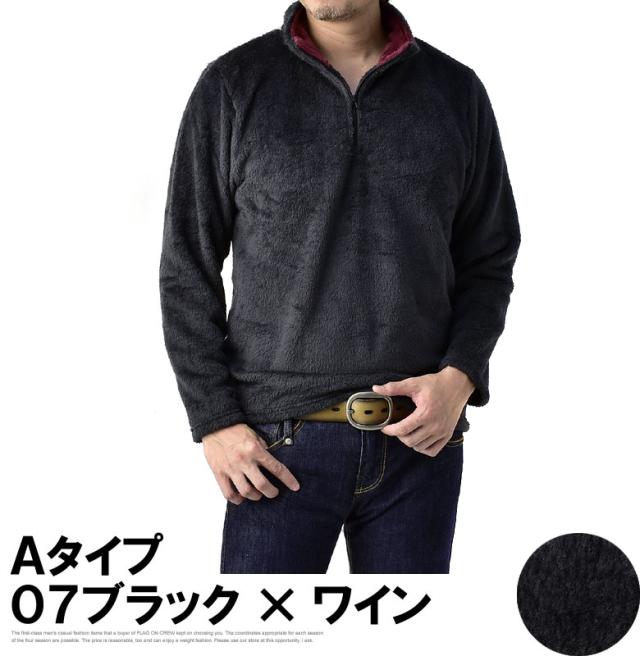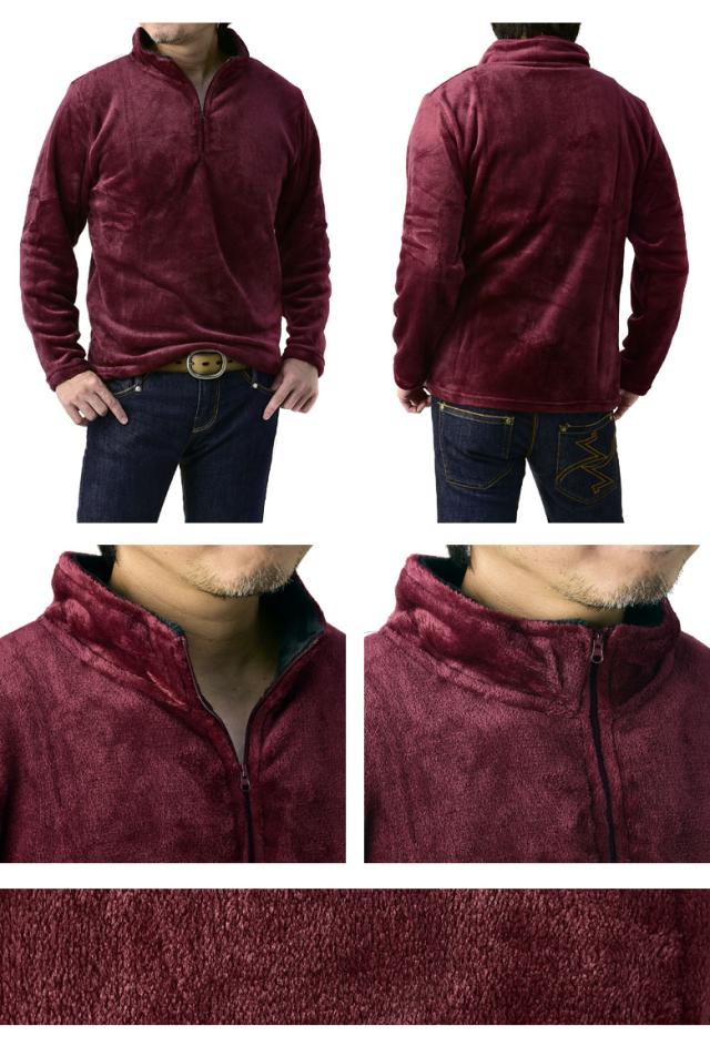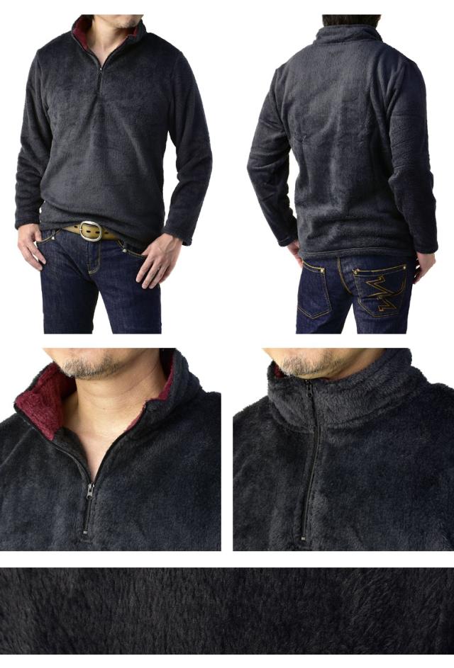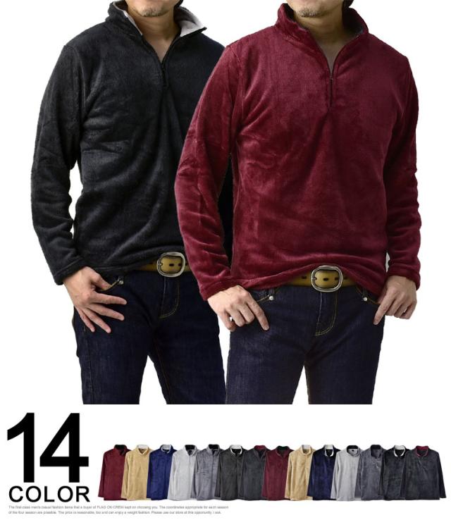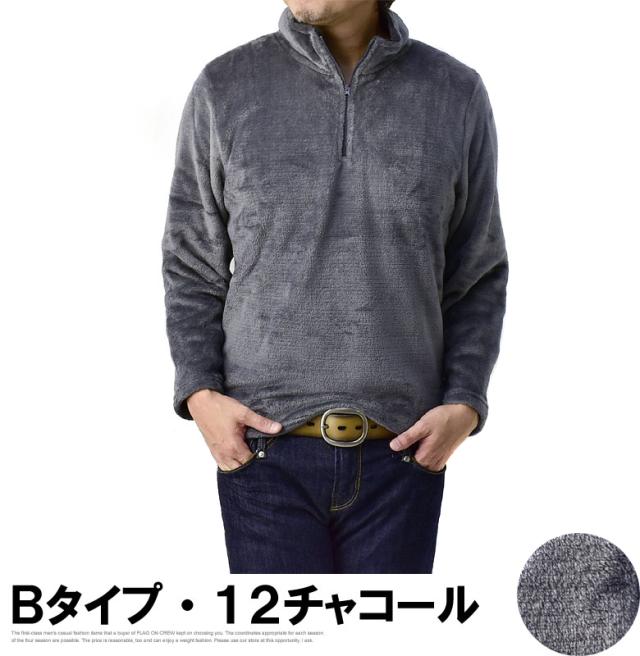 ボアフリース ハイネック メンズ タートルネック カットソー ハーフジップ ベロア あたたかい トップス 秋 冬 ポロ【B9Q】【パケ1】【A】