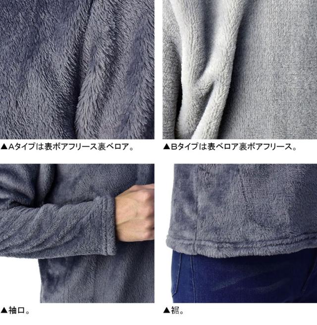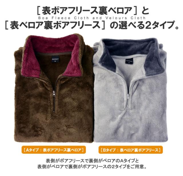 Bタイプは表地に細かな起毛のベロア、肌面はフワッとモコモコのボアフリース。