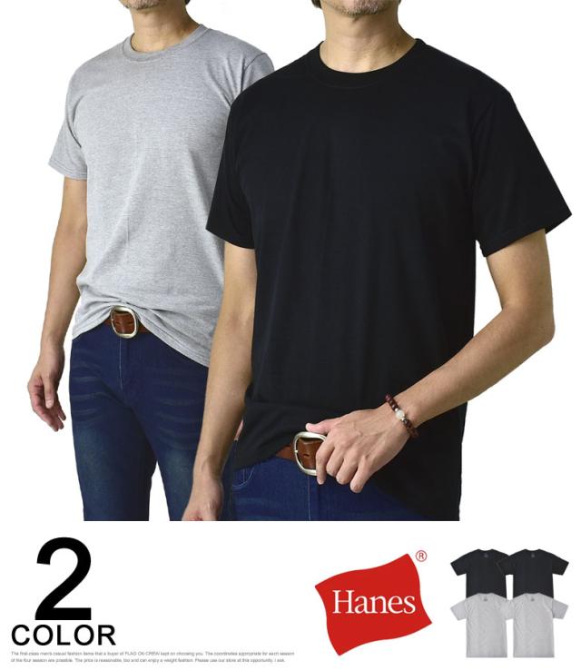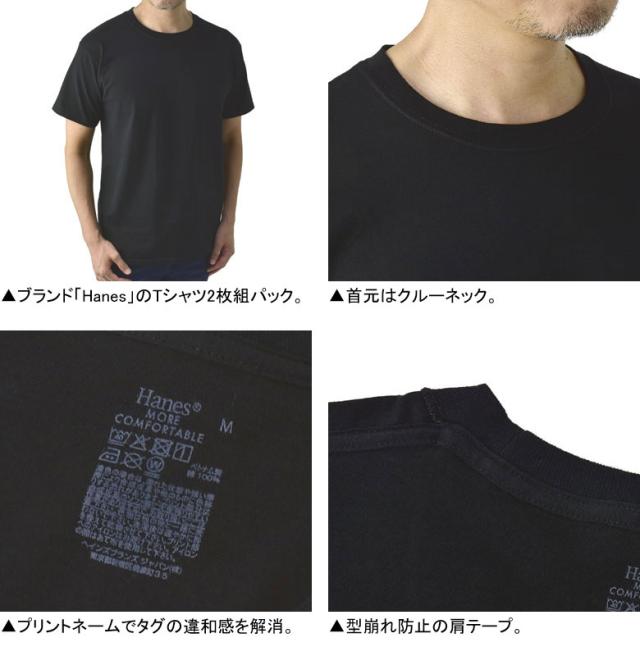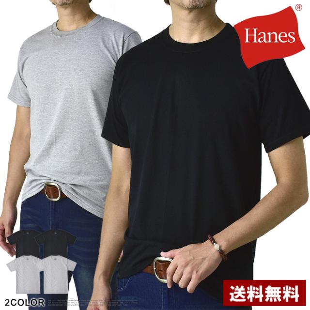 Tシャツ 無地 半袖 黒 グレー Hanes ヘインズ 2枚組 クルーネック メンズ インナー 2枚入 トップス HM1EU702【E3T】【パケ1】【A】