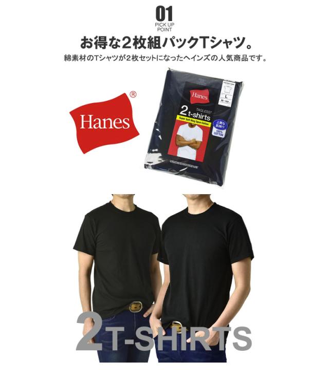 ブランド「Hanes・ヘインズ」のクルーネック半袖Tシャツが2枚入った商品です。