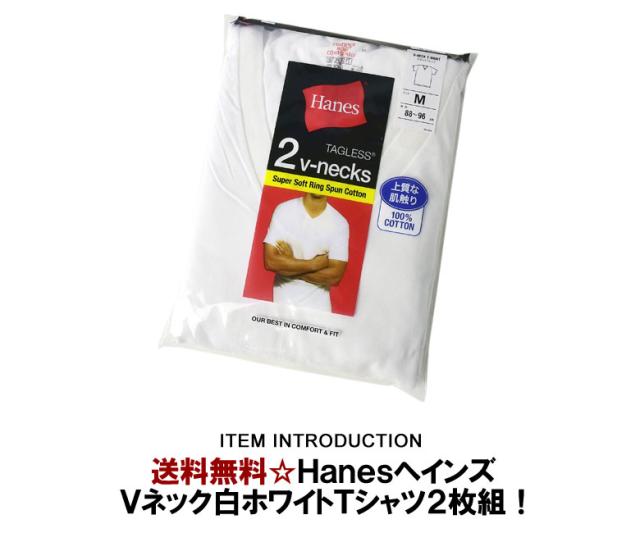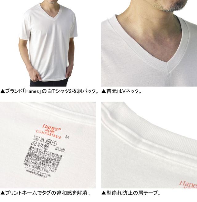 Tシャツ 無地 半袖 白 白T Hanes ヘインズ 2枚組 Vネック メンズ インナー 2枚入 HM1EU704【E3S】【パケ1】【A】