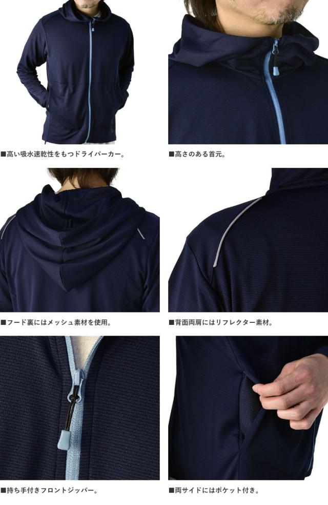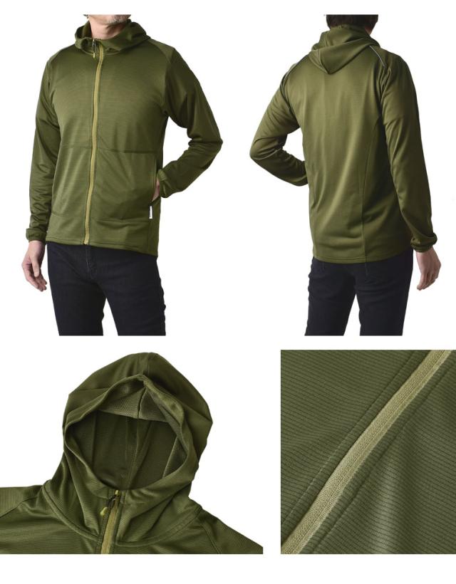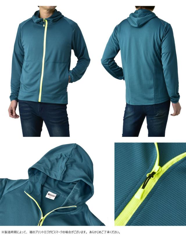 「秒速吸水倍速乾」と名付けられるほどの高い吸水速乾性を持つ ドライメッシュ生地を使用し、 春・夏・秋の3シーズン、冬場はアウターの中に着込める、 実質オールシーズン対応のパーカー。