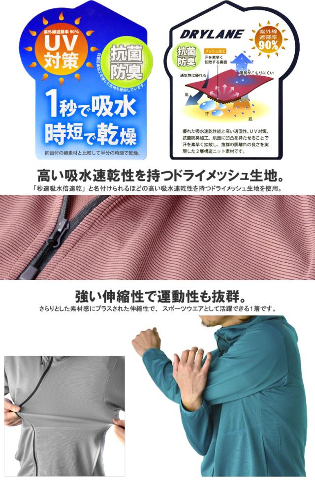 吸汗速乾 パーカー ドライメッシュ 秒速吸水 FIRSTDOWN ファーストダウン メンズ フルジップ UVウエア トップス アウター【A9A】【パケ1】
