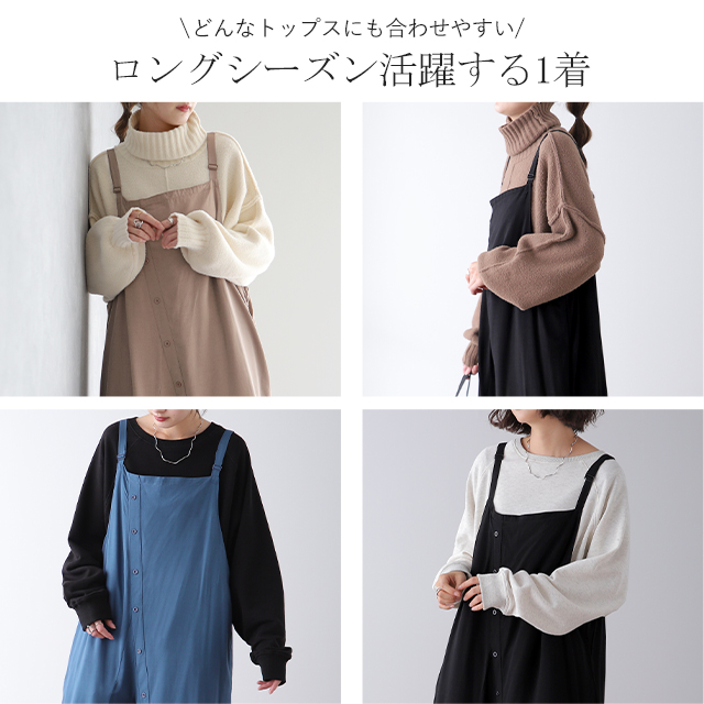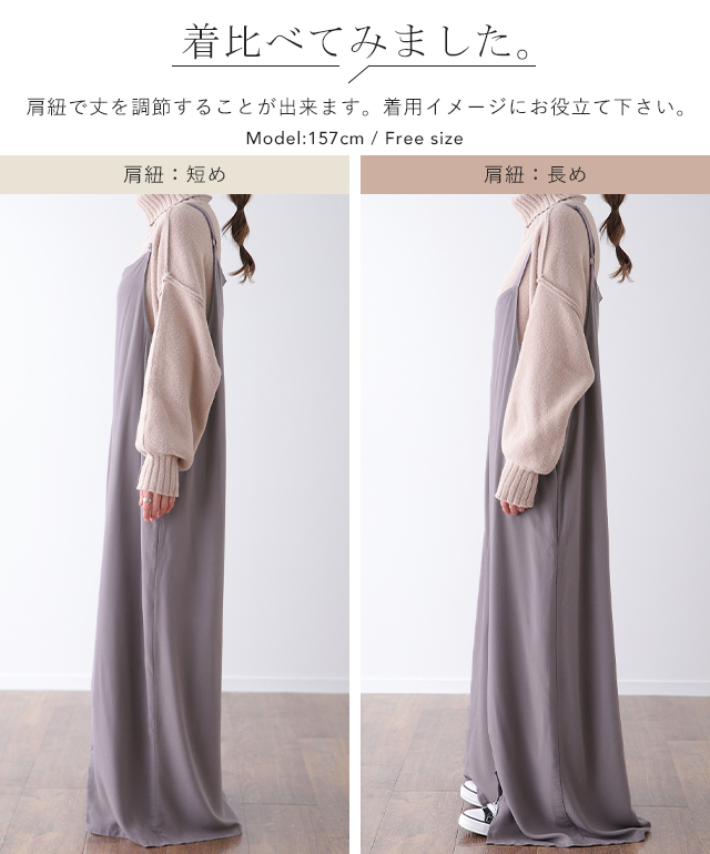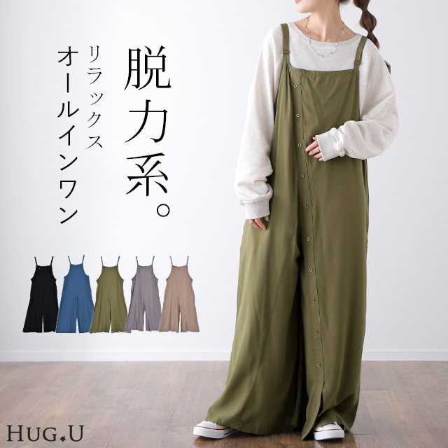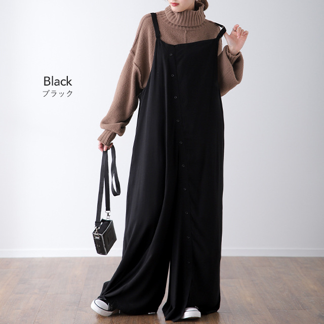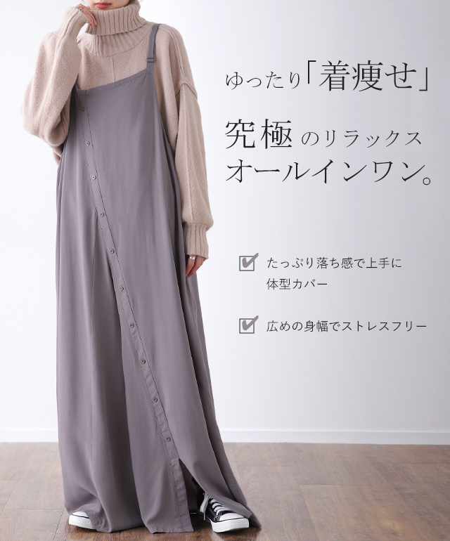 オールインワン レディース サロペット 体型カバー シンプル ナチュラルカラー 大きいサイズ フリーサイズ サロペ コンビネゾン つなぎ ワイドパンツ セレカジ きれいめ キャミワンピース パンツ ボトムス 冬 秋 秋新作