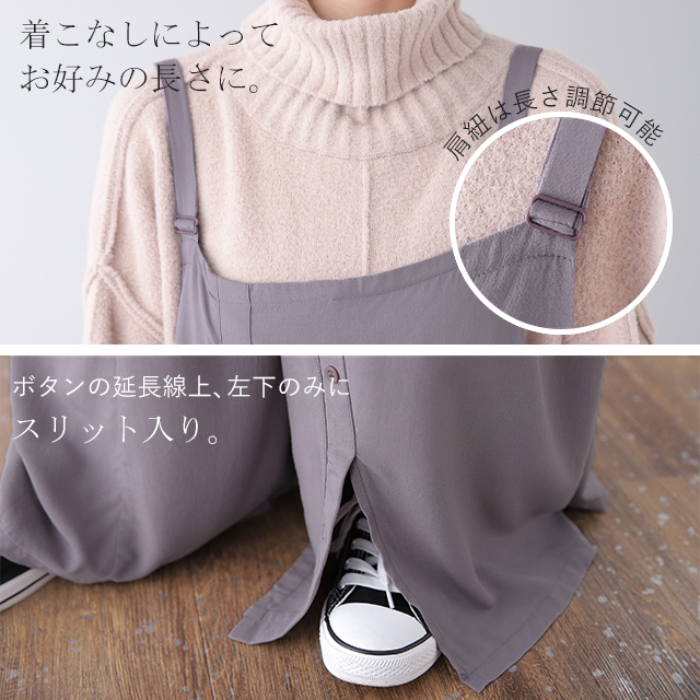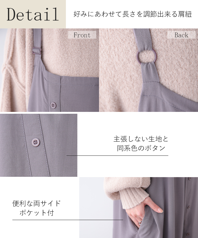 肩紐は調節可能で身長や体型に合わせて着ていただけます。
