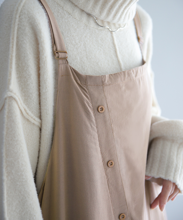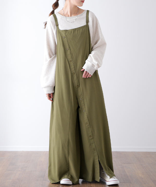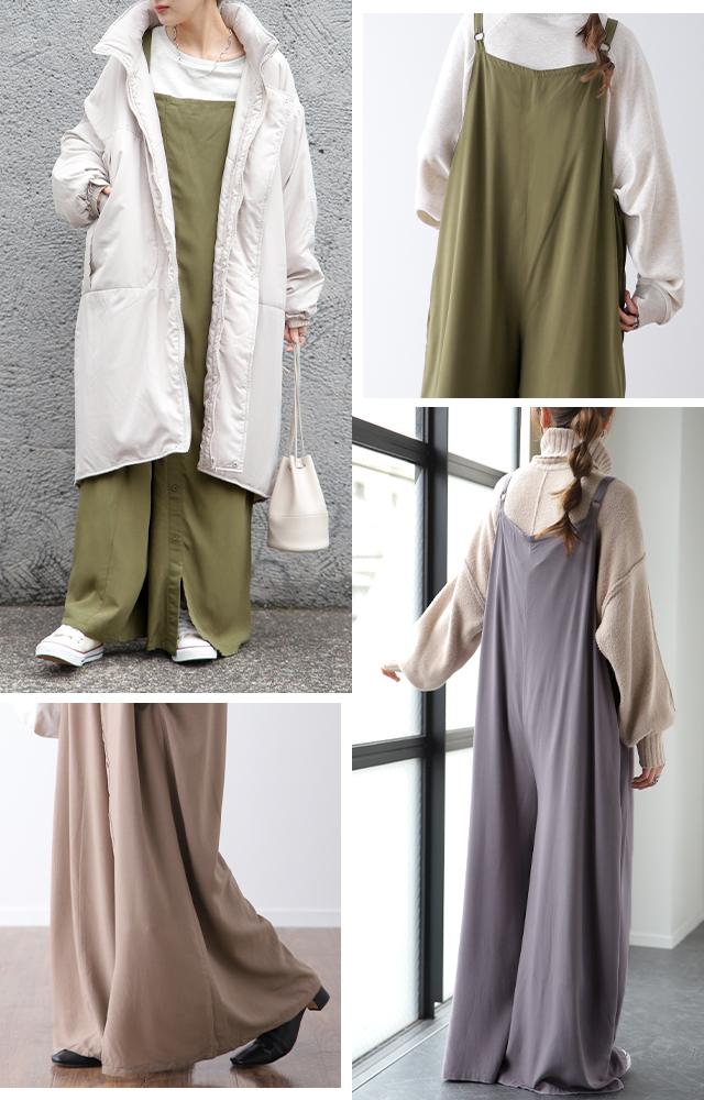 オシャレなシルエットが漂うナチュラルカラーのオールインワン。