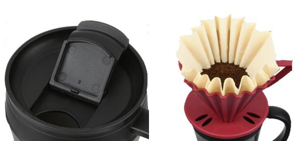 | 蓋付きで衛生的 蓋付きなので保温保冷を保ち、ほこりが入るのも防ぎ衛生的です。 | 便利な広口タイプ 市販のドリッパーを使ってマグカップに直接ドリップすることができます。 |