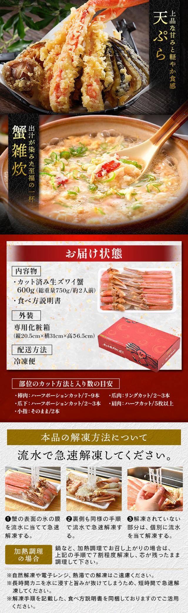 3箱で1箱無料!かに カニ 蟹 ズワイガニ ポーション お刺身OK 生 カット済み 600g (総重量750g) ずわい蟹 鍋 ハーフポーション 贈り物 kst23_d kst23_c ギフト プレゼント お歳暮