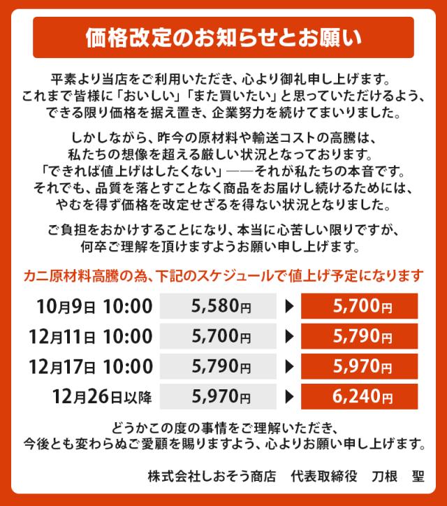 - 知人へ贈答品として購入しました。カニが大好きとのこと。美味しかったそうで良かった〜と思いました!