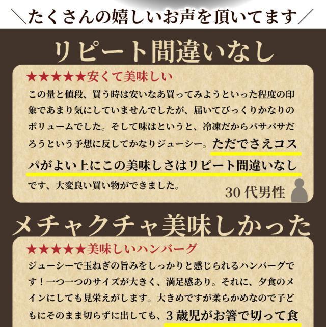 - ハンバーグ柔らかくて!ジューシーで!美味しい!それと瞬足な発送、迅速な対応、ガッチリした梱包も、お肉のしゃぶまるさんの大きな魅力! そのままでも、様々にアレンジしても、美味しくいただける、ハンバーグ...