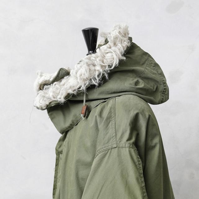 お探しの方も多いM-65パーカ用のフードです。ボリューム感のあるフードとファーは高い防寒性能に加え、特徴的な白いシンセティックファーを使用したM-65フードはファッションアイコンとしてもおなじみのアイテムとなります。近年、シェル単体のみでも高値で取引されているM-65パーカですが、フードを探している方も多いと思います。こちらも年々、手に入りにくくなりつつあるアイテムとなっていますのでお探しの方はお早めに。貴重なヴィンテージアイテムとなります。