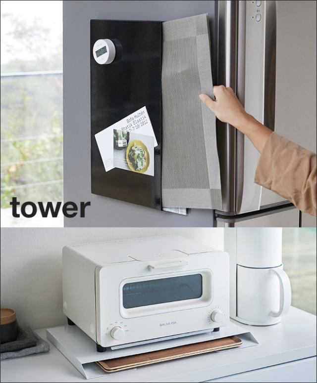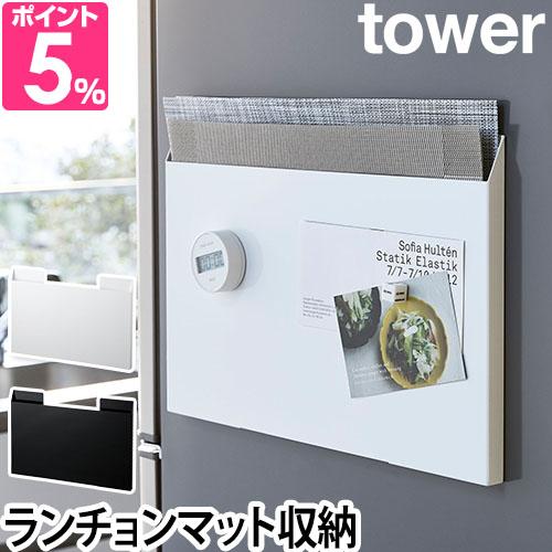 収納ボックス ランチョンマット収納 tower キッチン収納 ゴミ袋 トレー 磁石 スリム シンプル ホワイト ブラック