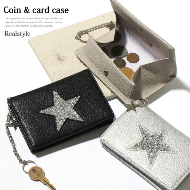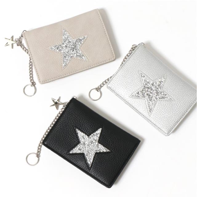スター キーリング付 フラグメントケース 財布 サイフ カードケース レディース ミニ財布 コインケース ウォレット ミニウォレット 小銭入れ カード収納 カード入れ クレジットカード 小さめ コンパクト 薄い bdc003