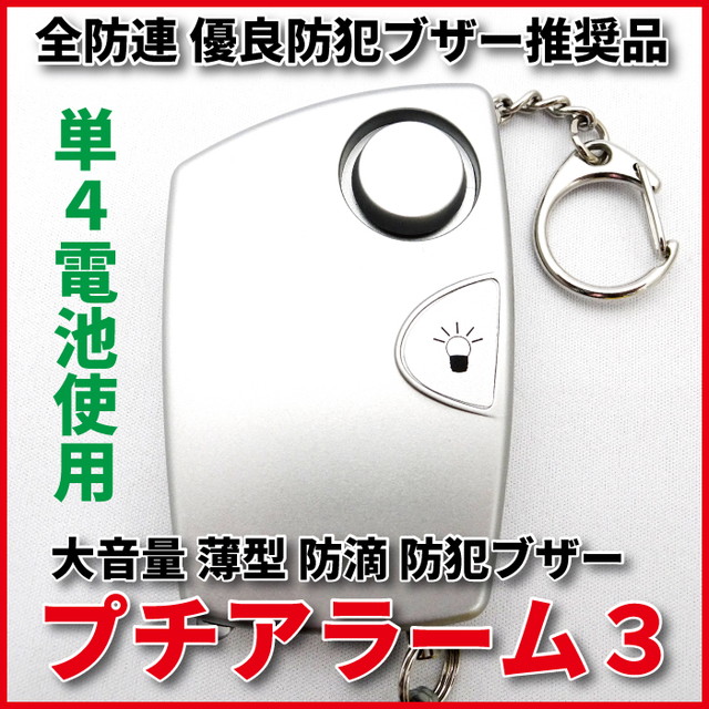 防犯ブザー 防犯アラーム 防滴 大音量 女性 生活防水 小学生 【プチアラーム3 PAW-35】 全国防犯協会連合会推奨 交通安全 シルバー 雨に強い 単4電池使用 薄型 プチアラームS 災害 登山 SOS 子供 児童 護身