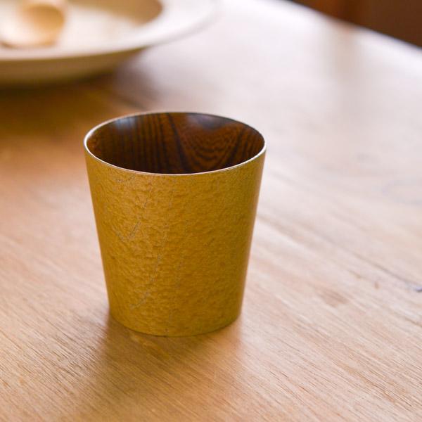うつろいカップ シャンパンゴールド/拭漆 L ( 退職祝い 定年 焼酎グラス ビアカップ ビールグラス フリーカップ グラス 山中漆器 結婚 )