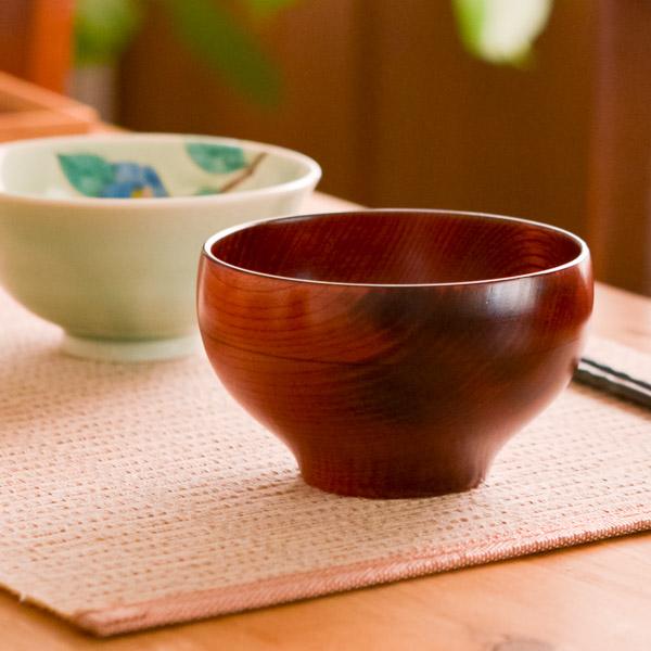 木製漆器の温もりと、肌なじみの良い柔らかな感触。見た目に美しい木目が印象的なお椀です。