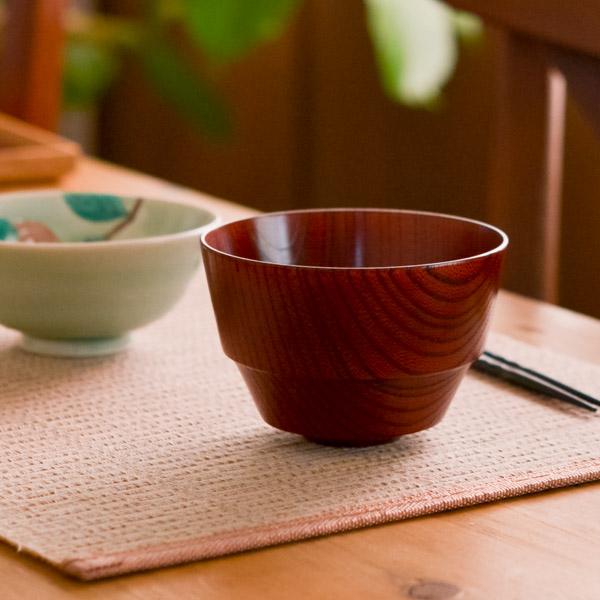 木製漆器の温もりと、肌なじみの良い柔らかな感触。見た目に美しい木目が印象的なお椀です。