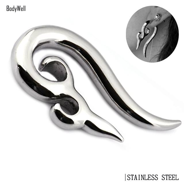ボディピアス 0G トライバルデザイン 耳ピアス フックピアス 拡張ピアス ステンレスピアス